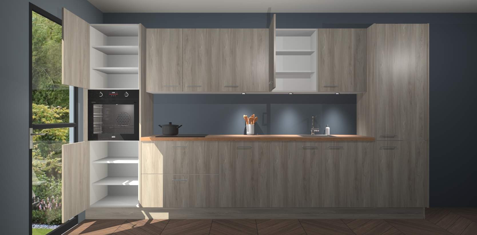 Dit is de perfecte keuken voor wie op zoek is naar een luxueuze stijl zonder zijn portemonnee te legen! Het chique ontwerp van de olm keuken Wels voegt dat vleugje verfijning toe aan elk huis. Het gemak van voorgemonteerde kasten bespaart u talloze uren tijd en energie, zodat u veel sneller dan verwacht kunt beginnen te genieten van uw prachtige nieuwe keuken. Bovendien bedraagt de levertijd slechts 7 weken.