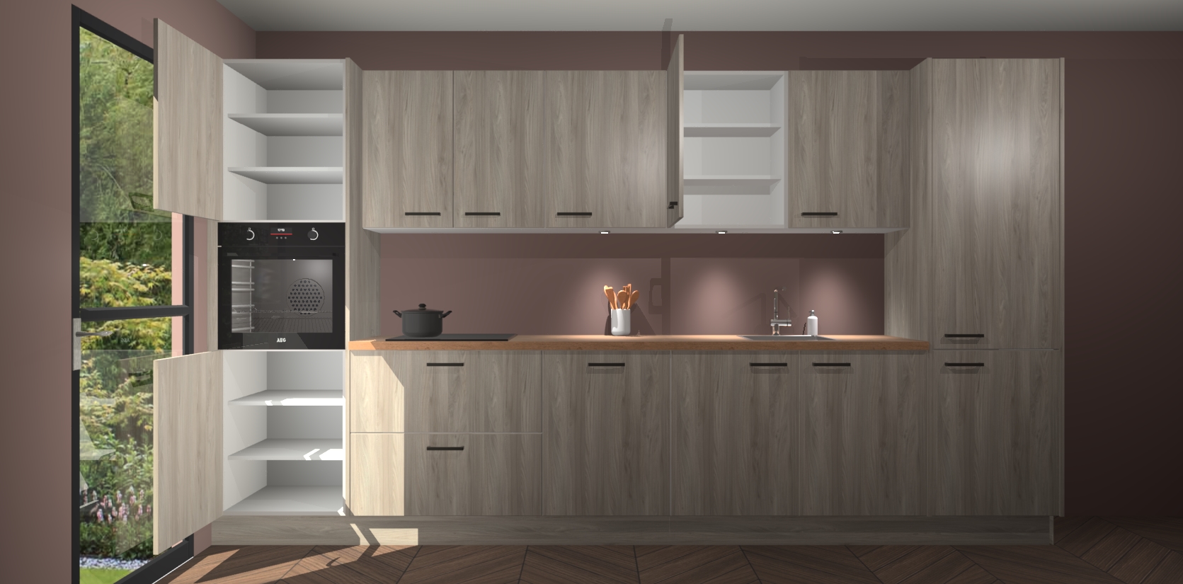 Dit is de perfecte keuken voor wie op zoek is naar een luxueuze stijl zonder zijn portemonnee te legen! Het chique ontwerp van de olm keuken Wels voegt dat vleugje verfijning toe aan elk huis. Het gemak van voorgemonteerde kasten bespaart u talloze uren tijd en energie, zodat u veel sneller dan verwacht kunt beginnen te genieten van uw prachtige nieuwe keuken. Bovendien bedraagt de levertijd slechts 7 weken.