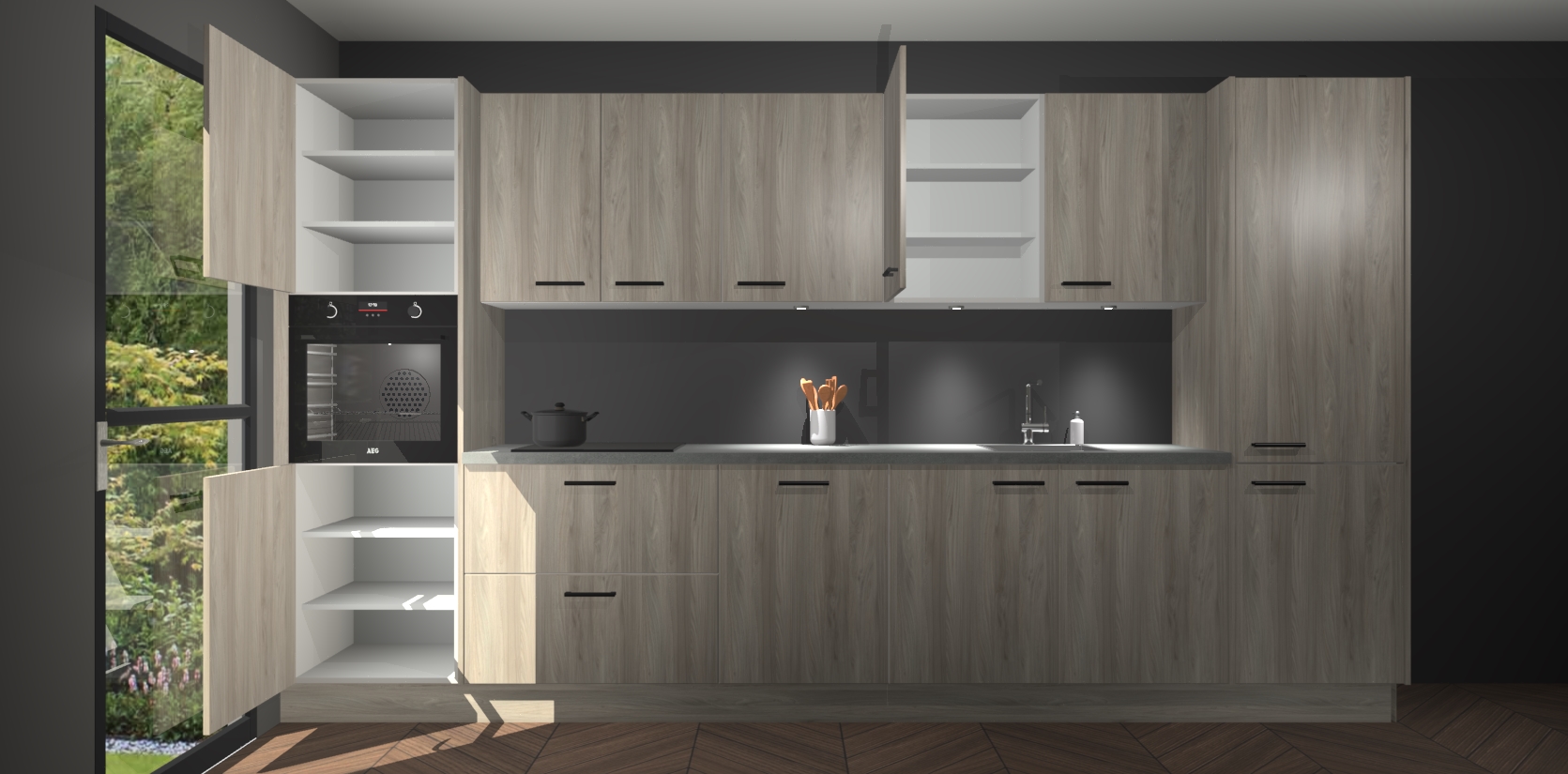 Dit is de perfecte keuken voor wie op zoek is naar een luxueuze stijl zonder zijn portemonnee te legen! Het chique ontwerp van de olm keuken Wels voegt dat vleugje verfijning toe aan elk huis. Het gemak van voorgemonteerde kasten bespaart u talloze uren tijd en energie, zodat u veel sneller dan verwacht kunt beginnen te genieten van uw prachtige nieuwe keuken. Bovendien bedraagt de levertijd slechts 7 weken.