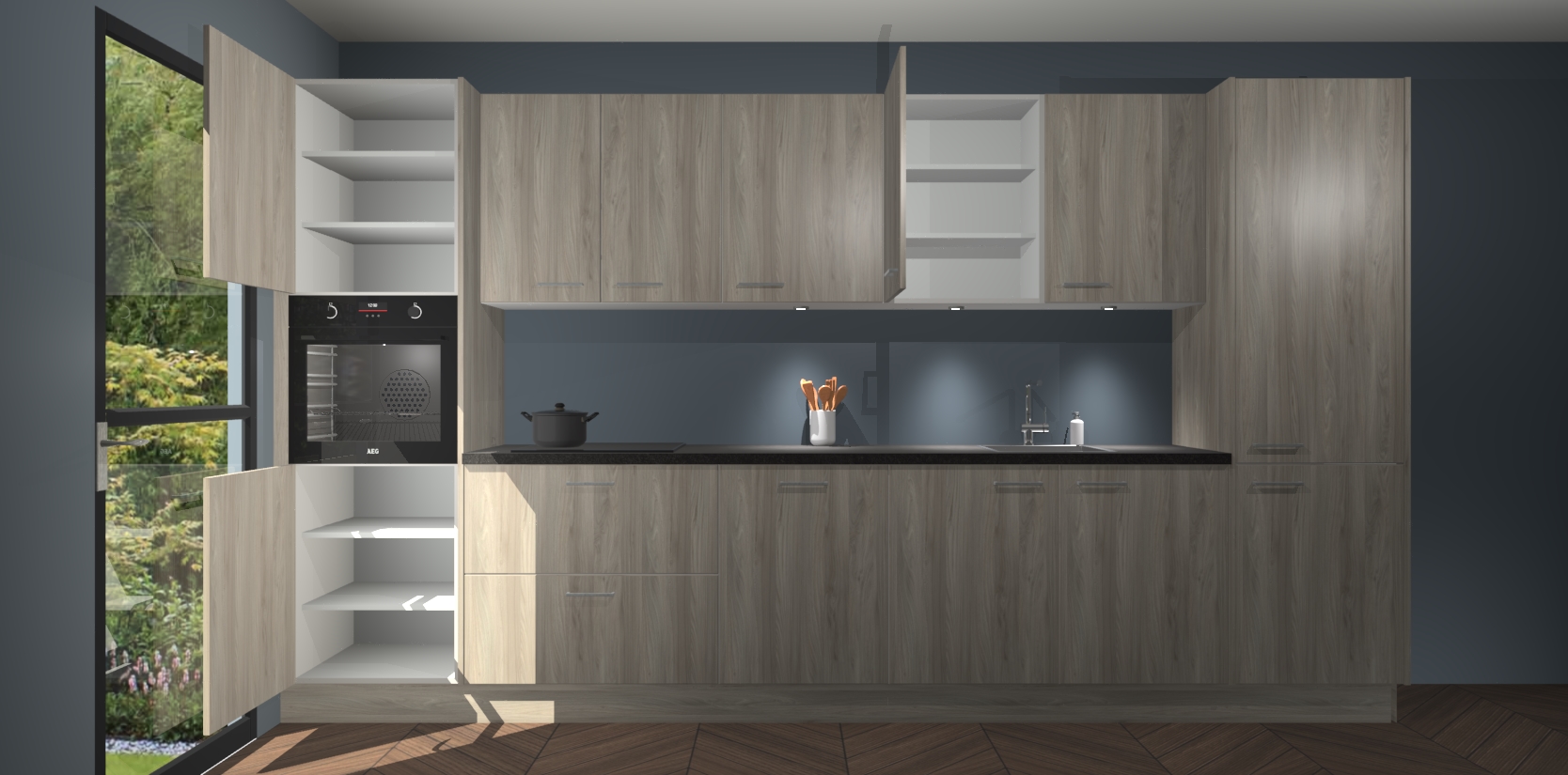 Dit is de perfecte keuken voor wie op zoek is naar een luxueuze stijl zonder zijn portemonnee te legen! Het chique ontwerp van de olm keuken Wels voegt dat vleugje verfijning toe aan elk huis. Het gemak van voorgemonteerde kasten bespaart u talloze uren tijd en energie, zodat u veel sneller dan verwacht kunt beginnen te genieten van uw prachtige nieuwe keuken. Bovendien bedraagt de levertijd slechts 7 weken.