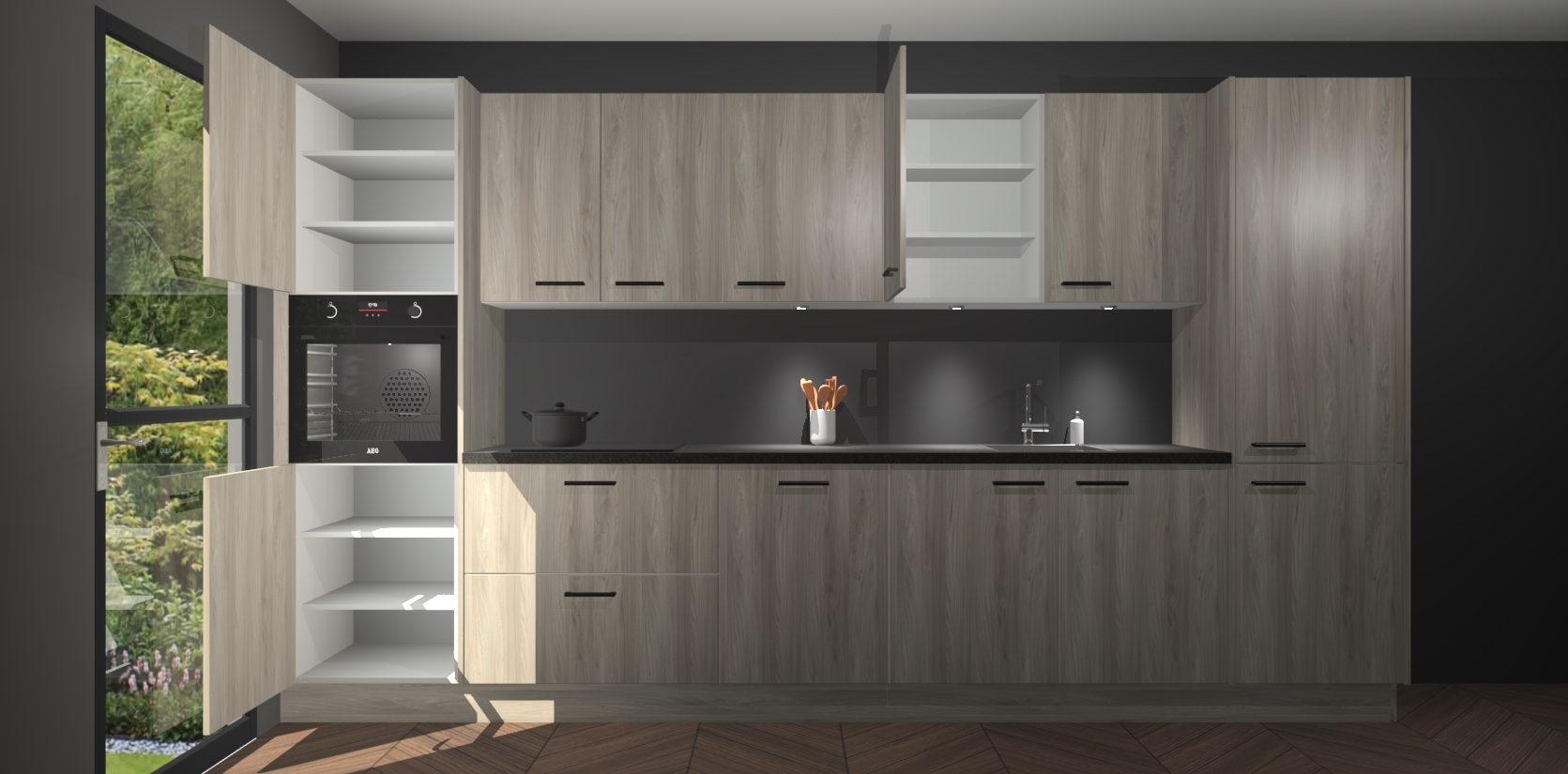 Dit is de perfecte keuken voor wie op zoek is naar een luxueuze stijl zonder zijn portemonnee te legen! Het chique ontwerp van de olm keuken Wels voegt dat vleugje verfijning toe aan elk huis. Het gemak van voorgemonteerde kasten bespaart u talloze uren tijd en energie, zodat u veel sneller dan verwacht kunt beginnen te genieten van uw prachtige nieuwe keuken. Bovendien bedraagt de levertijd slechts 7 weken.