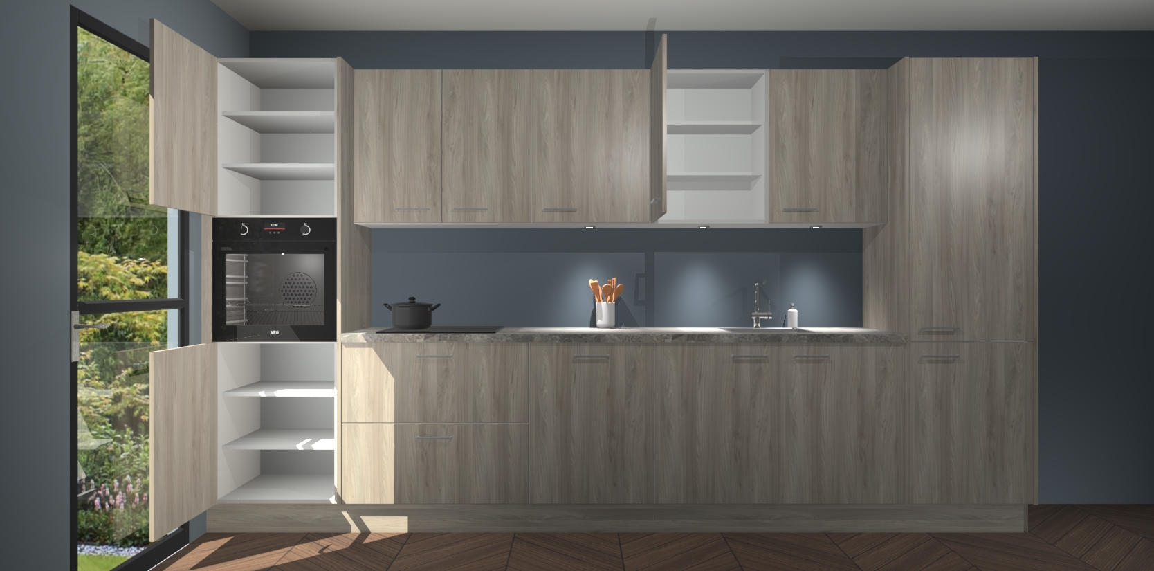 Dit is de perfecte keuken voor wie op zoek is naar een luxueuze stijl zonder zijn portemonnee te legen! Het chique ontwerp van de olm keuken Wels voegt dat vleugje verfijning toe aan elk huis. Het gemak van voorgemonteerde kasten bespaart u talloze uren tijd en energie, zodat u veel sneller dan verwacht kunt beginnen te genieten van uw prachtige nieuwe keuken. Bovendien bedraagt de levertijd slechts 7 weken.