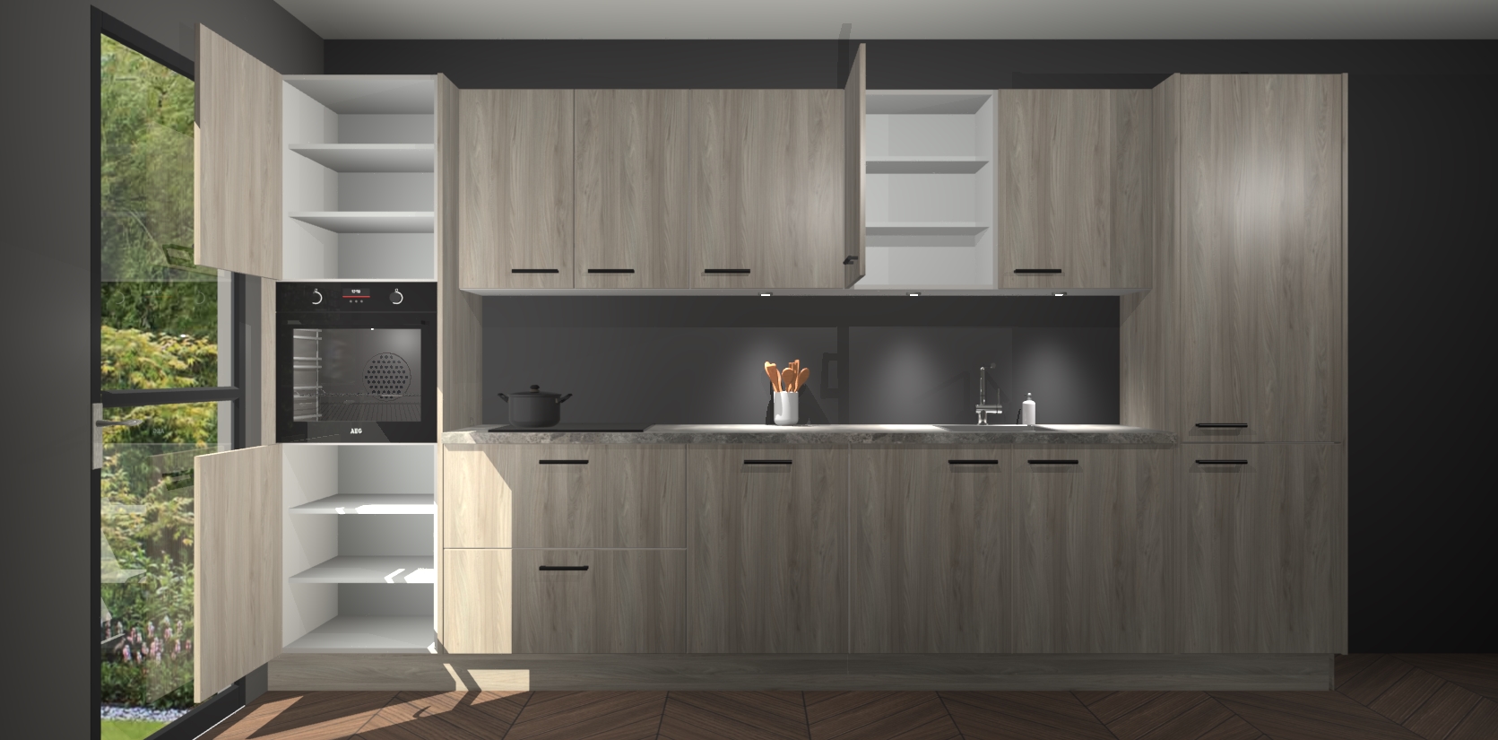 Dit is de perfecte keuken voor wie op zoek is naar een luxueuze stijl zonder zijn portemonnee te legen! Het chique ontwerp van de olm keuken Wels voegt dat vleugje verfijning toe aan elk huis. Het gemak van voorgemonteerde kasten bespaart u talloze uren tijd en energie, zodat u veel sneller dan verwacht kunt beginnen te genieten van uw prachtige nieuwe keuken. Bovendien bedraagt de levertijd slechts 7 weken.