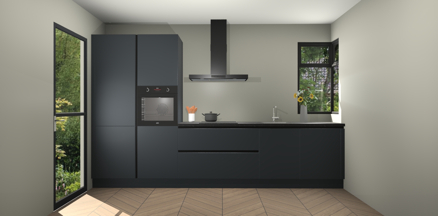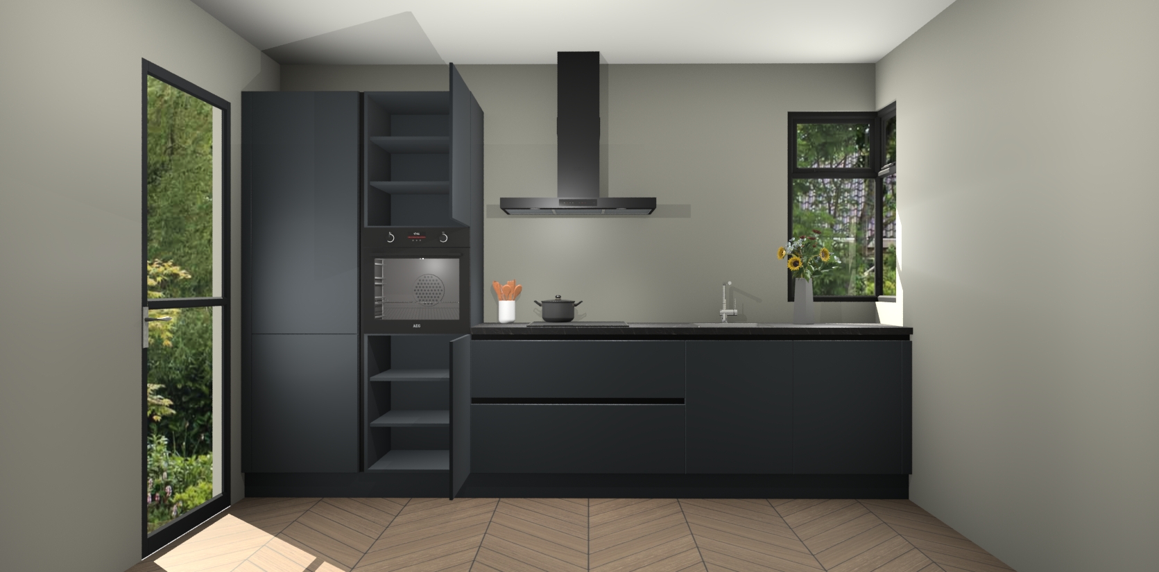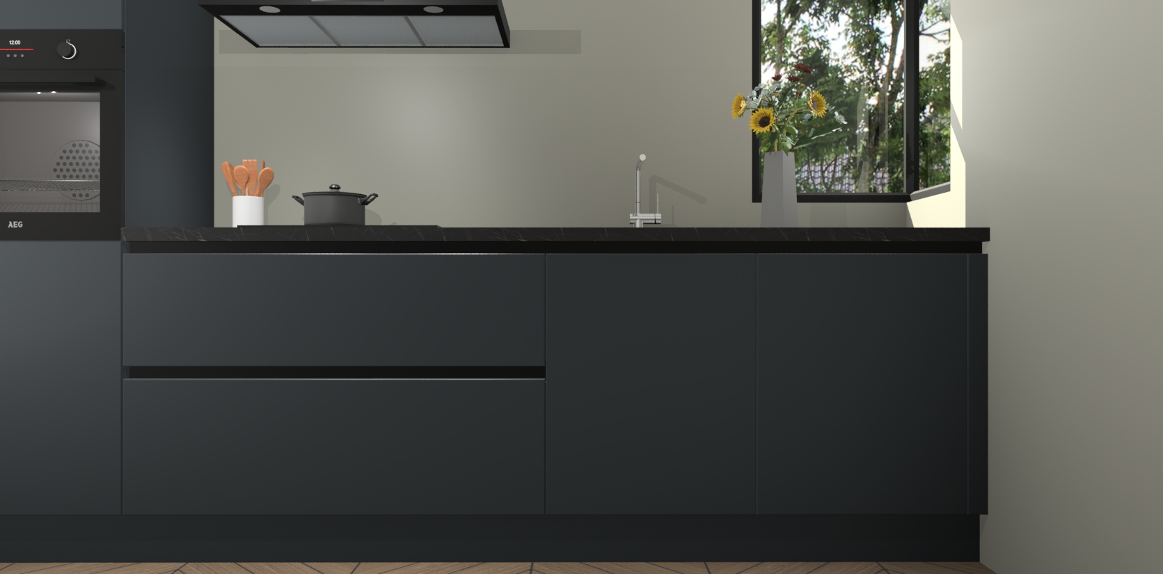 Voor wie alles wil, hebben we 5 inbouwapparaten die u na plaatsing van uw bestelling gemakkelijk kunt upgraden: een oven, inductiekookplaat, afzuigkap, vaatwasser en koelkast. Bovendien worden de kasten voor gemonteerd geleverd voor optimaal gemak. Onze Onyxgrijs greeploze keuken Zweden biedt iets bijzonders voor iedereen. Tel al deze kwaliteiten plus onze altijd scherpe prijzen bij elkaar op en u krijgt een zeer gewild product.