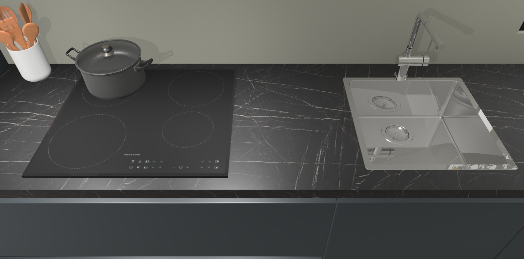 - Uitsparing van kookplaat, spoelbak en kraan dient u zelf te verzorgen.