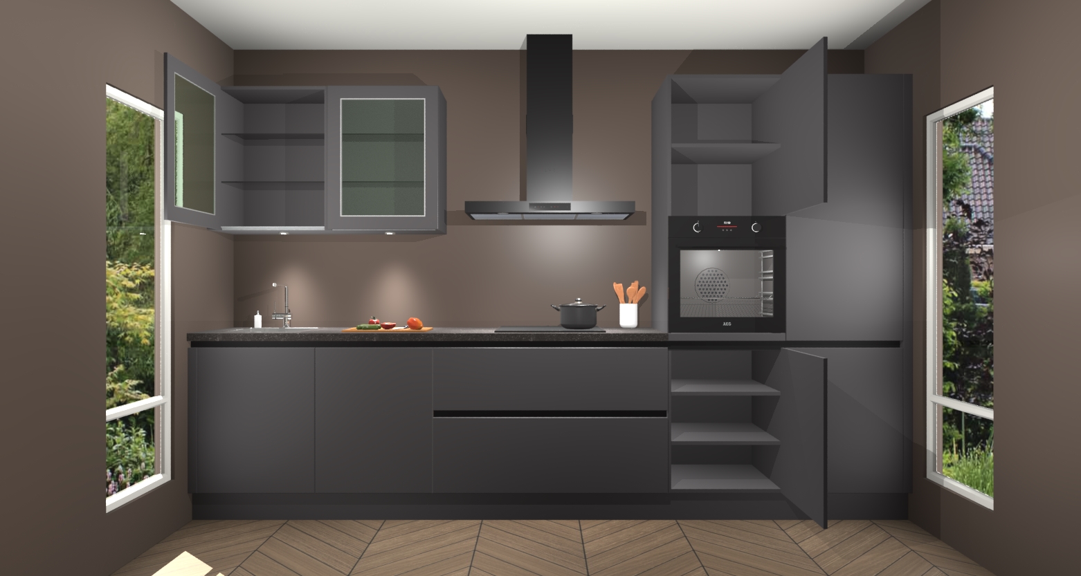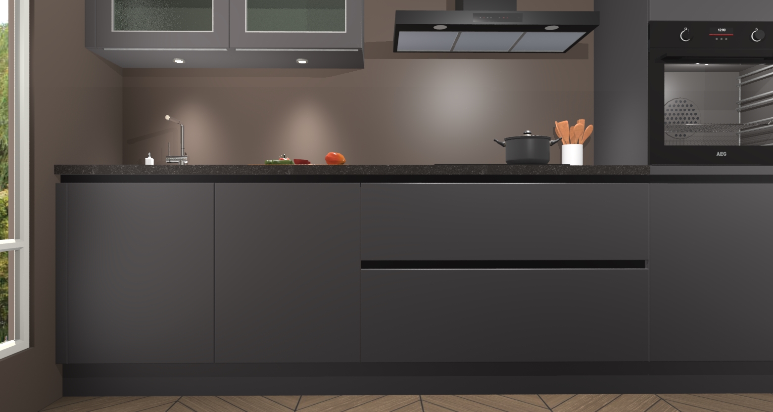 Softclose deuren op elk kastelement bieden handige toegang zonder lawaai en beschermen tegelijkertijd tegen spaanders en krassen. Deze functie beschermt niet alleen uw nieuwe keuken, maar geeft u ook gemoedsrust omdat je weet dat je een product krijgt dat is ontworpen met kwaliteit als topprioriteit. En voor de technisch onderlegde koks is het geen probleem om deze keuken te upgraden naar AEG apparatuur - de Cairo maakt het u gemakkelijk.