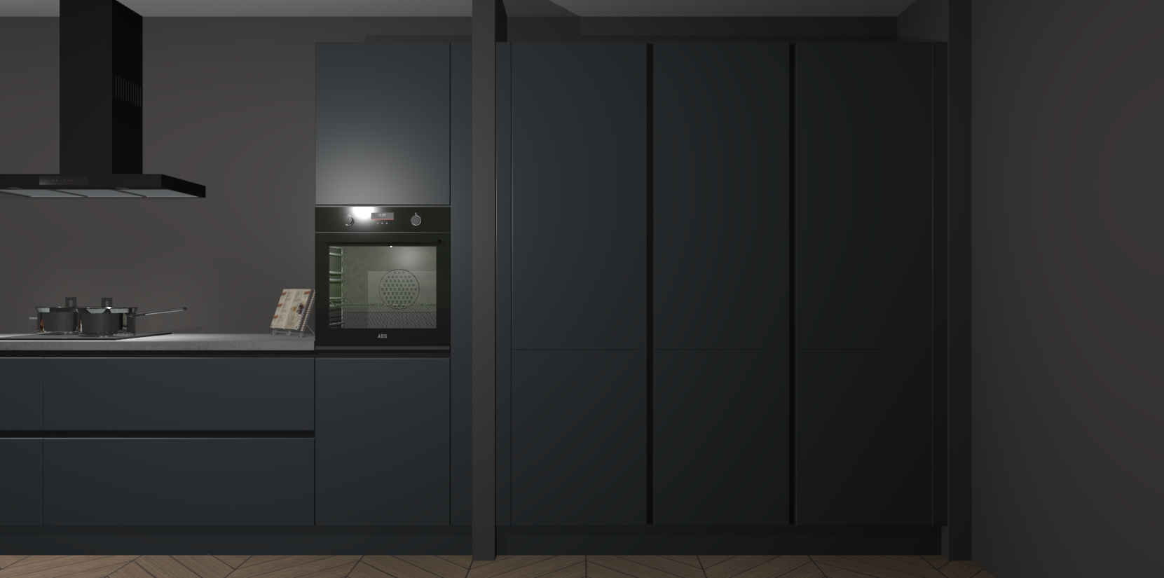 Een stijlvolle en praktische keuken als deze mag gezien worden. Dankzij de prachtige matte afwerking wordt de keuken gemakkelijk het middelpunt van uw huis - hij ziet er geweldig uit onder allerlei lichtomstandigheden, van dag tot nacht!
