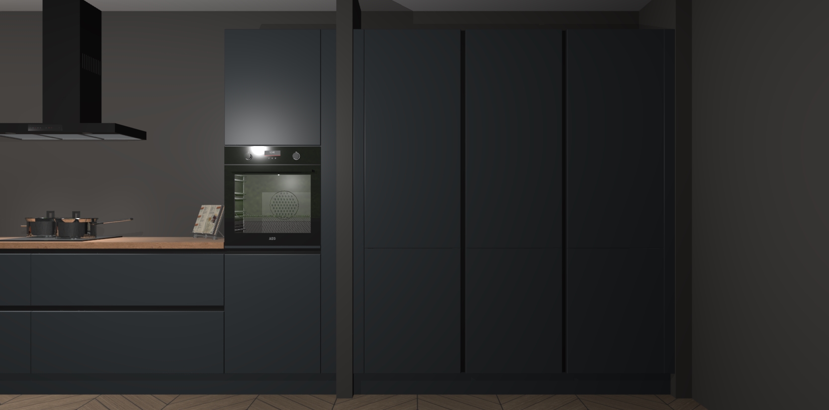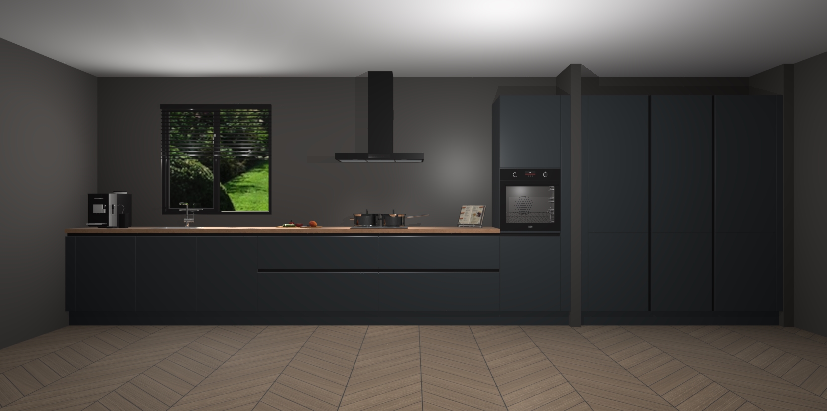 Een stijlvolle en praktische keuken als deze mag gezien worden. Dankzij de prachtige matte afwerking wordt de keuken gemakkelijk het middelpunt van uw huis - hij ziet er geweldig uit onder allerlei lichtomstandigheden, van dag tot nacht!