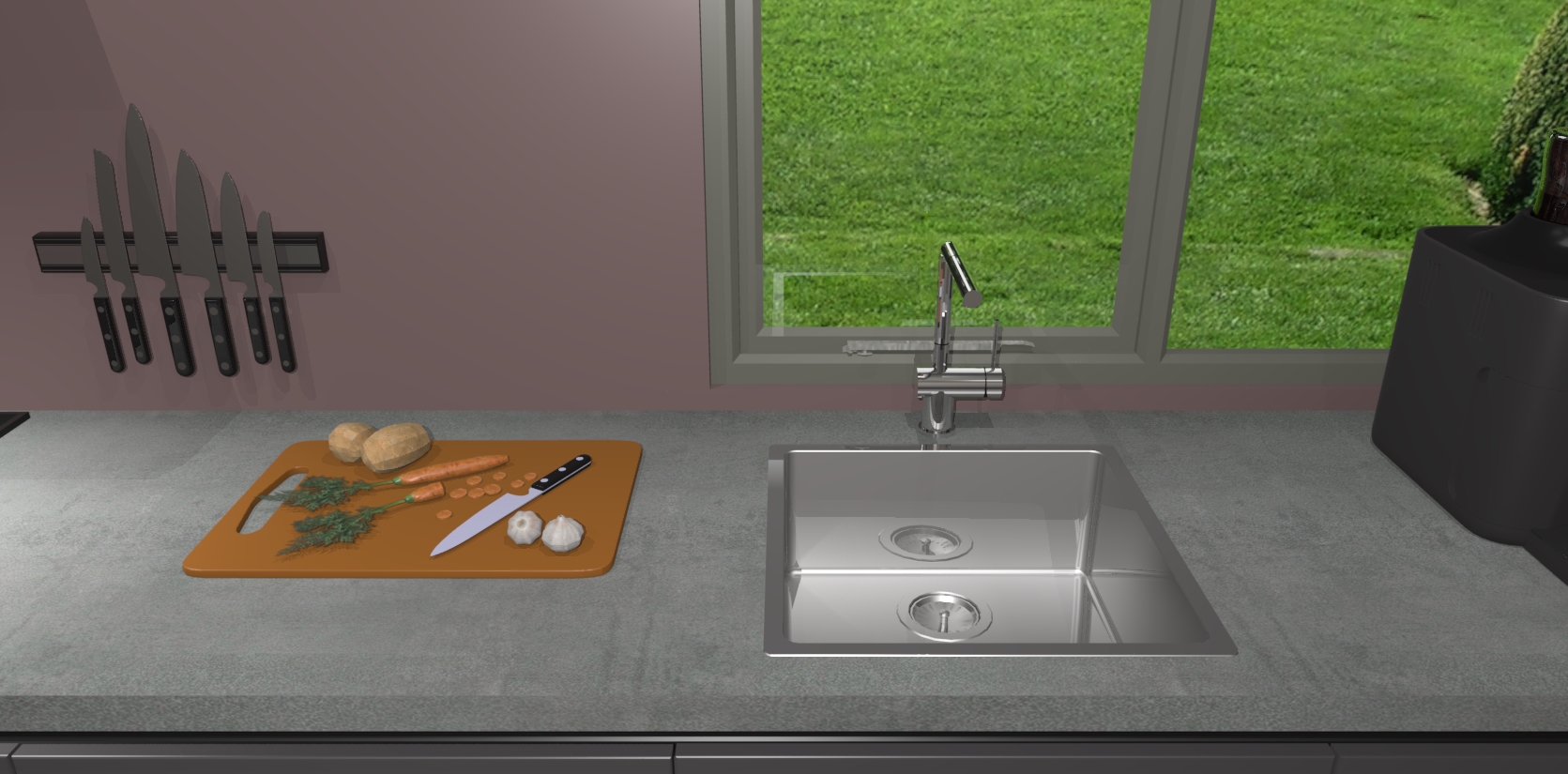 - De spoelbak is nog niet in gevreesd. Dit dient tijdens het werk gedaan te worden