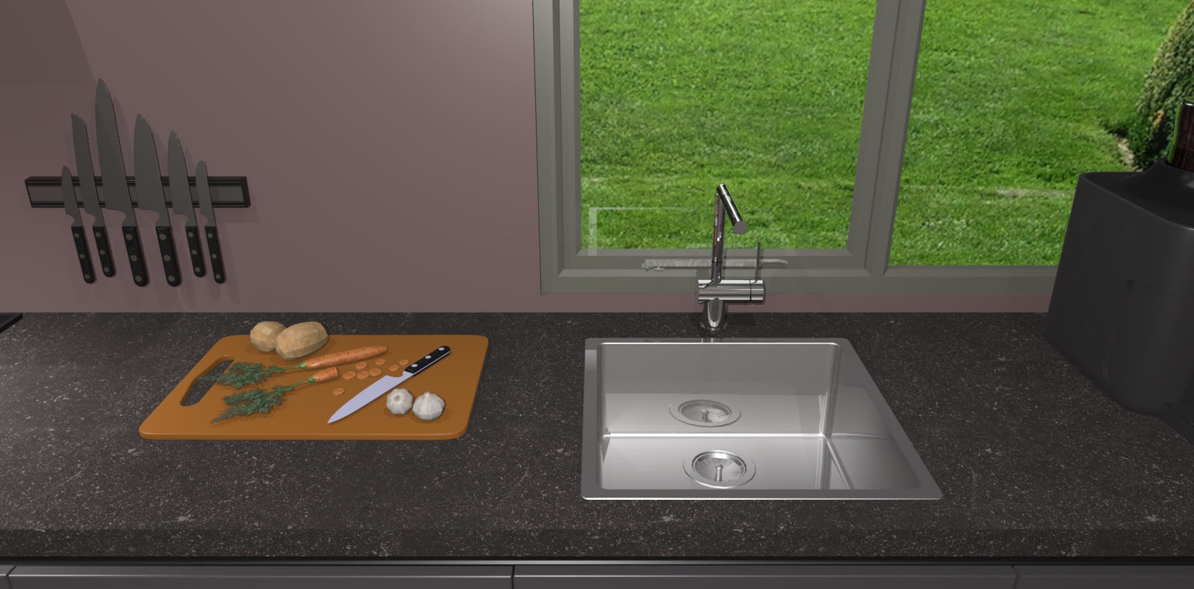 - De spoelbak is nog niet in gevreesd. Dit dient tijdens het werk gedaan te worden