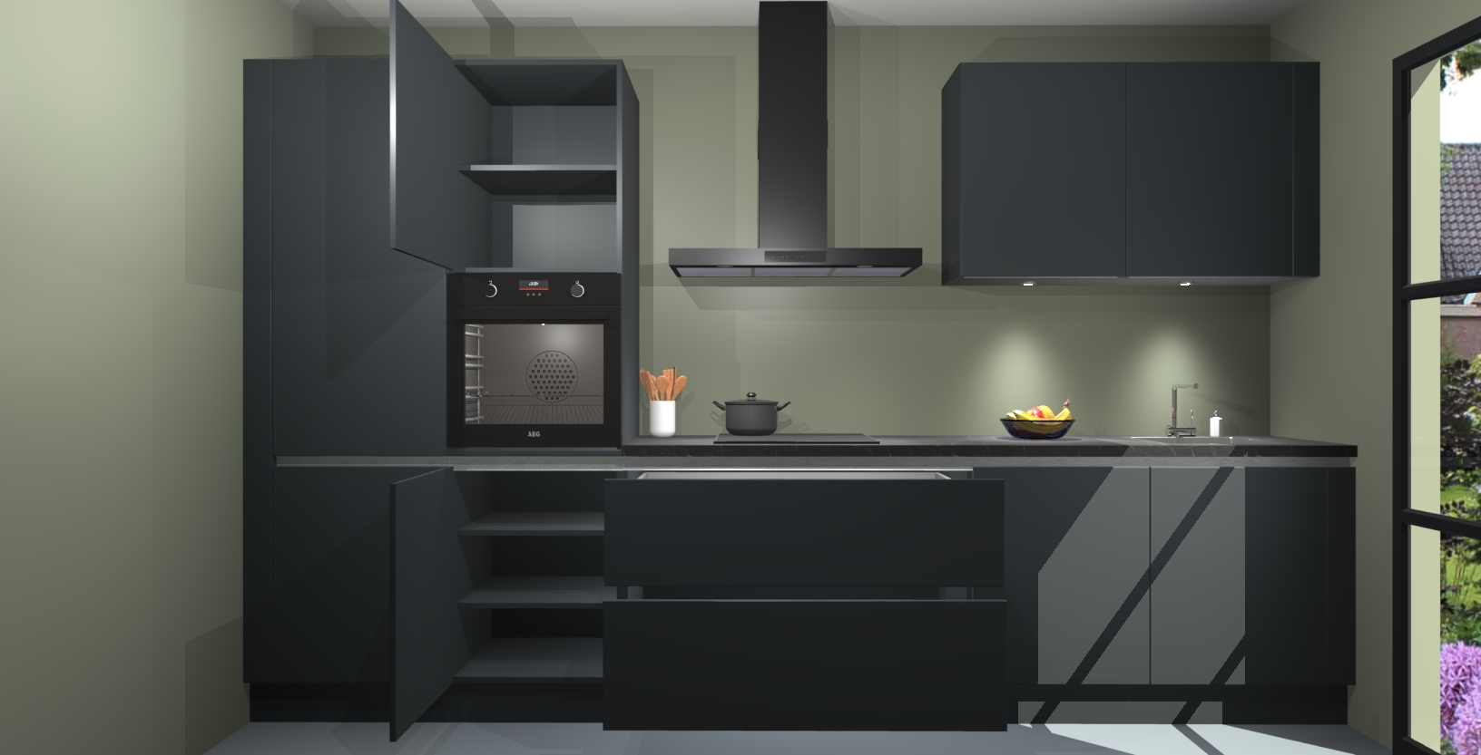 Bovendien is er veel opbergruimte met deze pracht keuken, zodat u ervoor kunt zorgen dat uw kasten en lades altijd georganiseerd zijn - iets wat iedereen waardeert in een drukke keuken. Niemand houdt van een lawaaierige keuken als u de deuren opent en sluit; dankzij de soft close technologie gaat het openen en sluiten van de deuren geruisloos! Bovendien krijgt u de levering binnen 7 weken - hoe geweldig is dat?