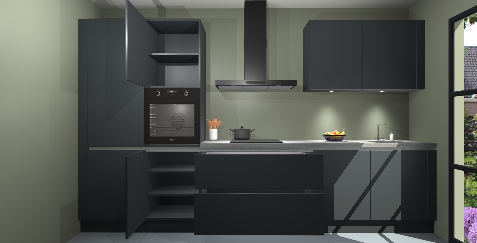 Bovendien is er veel opbergruimte met deze pracht keuken, zodat u ervoor kunt zorgen dat uw kasten en lades altijd georganiseerd zijn - iets wat iedereen waardeert in een drukke keuken. Niemand houdt van een lawaaierige keuken als u de deuren opent en sluit; dankzij de soft close technologie gaat het openen en sluiten van de deuren geruisloos! Bovendien krijgt u de levering binnen 7 weken - hoe geweldig is dat?