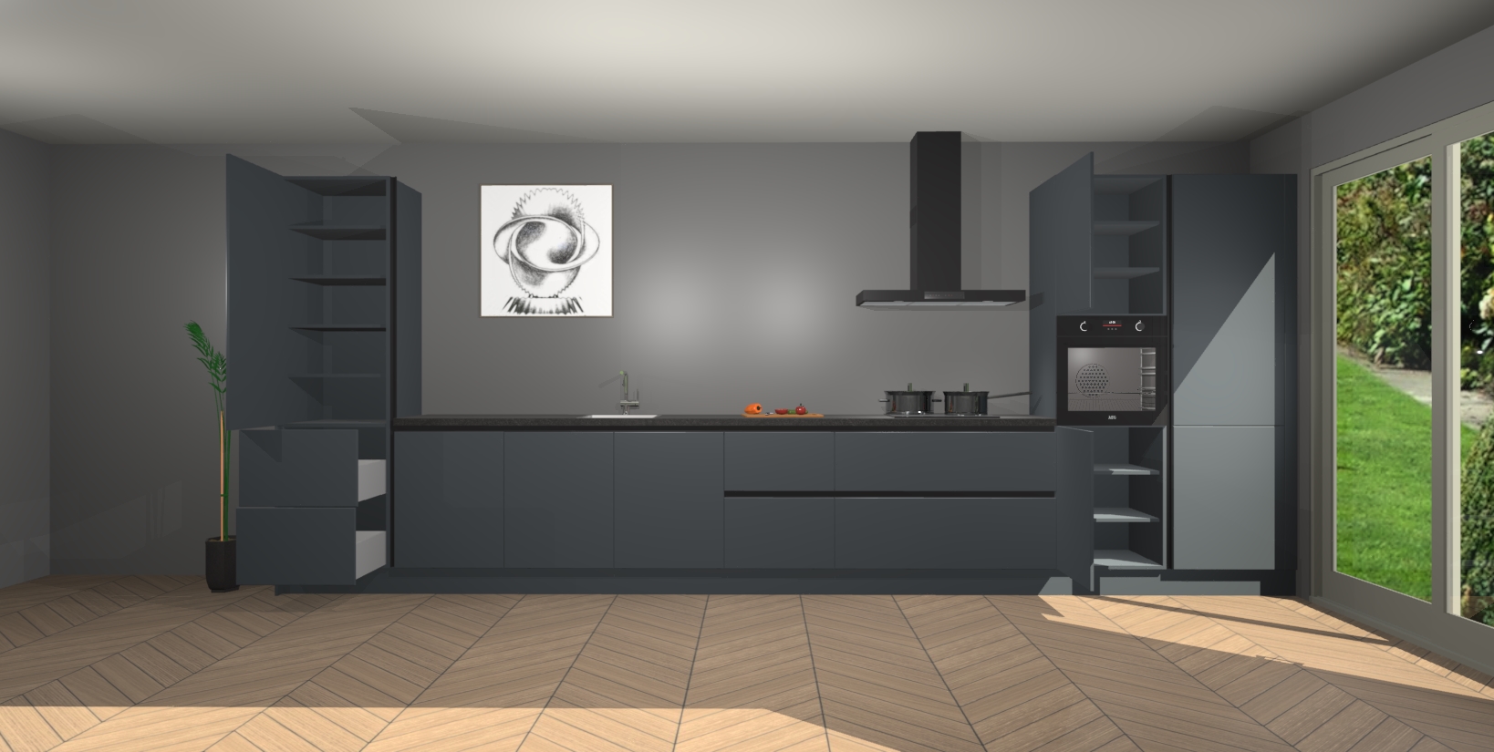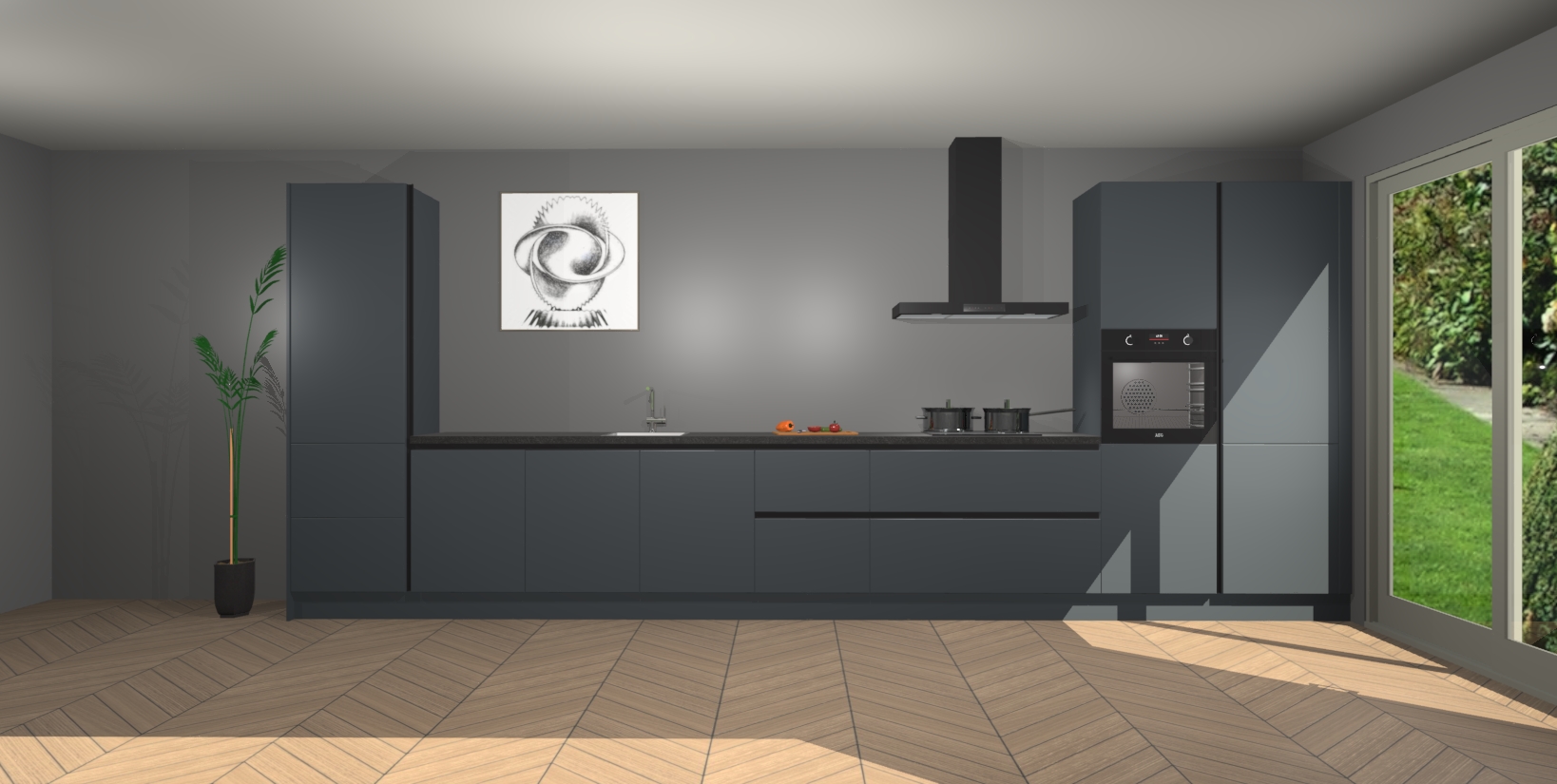 De Onyxgrijze greeploze keuken Barentsburg is de perfecte combinatie van stijl en functionaliteit. Het strakke design geeft uw keuken een moderne look die jarenlang meegaat. Bovendien zorgen onze deuren met softclose voor extra gebruiksgemak en gemoedsrust.