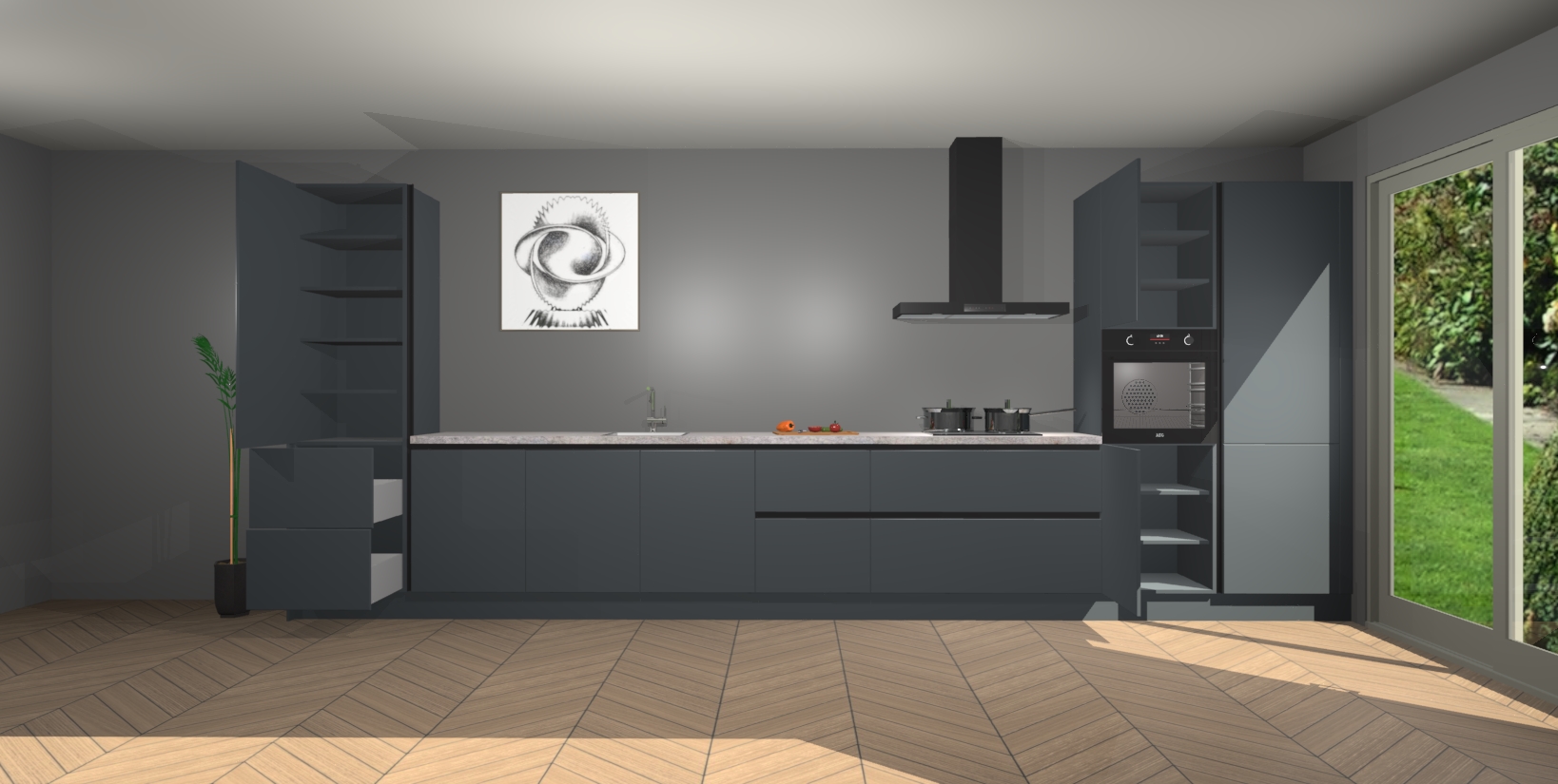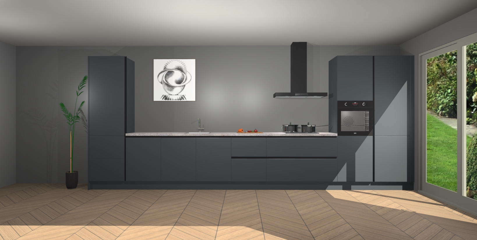 De Onyxgrijze greeploze keuken Barentsburg is de perfecte combinatie van stijl en functionaliteit. Het strakke design geeft uw keuken een moderne look die jarenlang meegaat. Bovendien zorgen onze deuren met softclose voor extra gebruiksgemak en gemoedsrust.