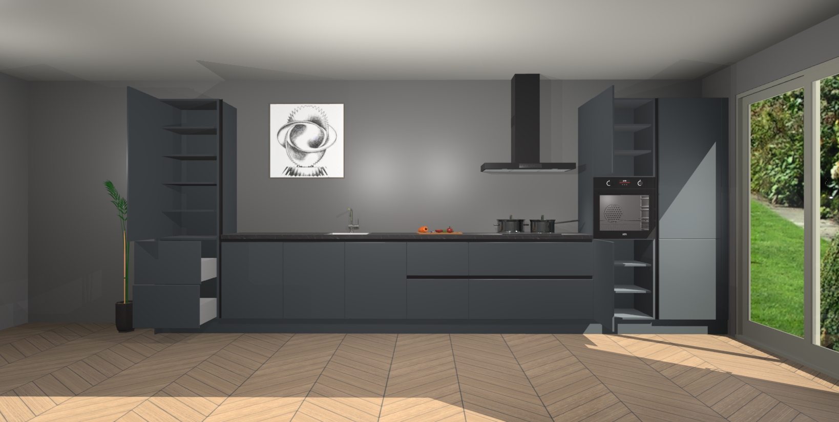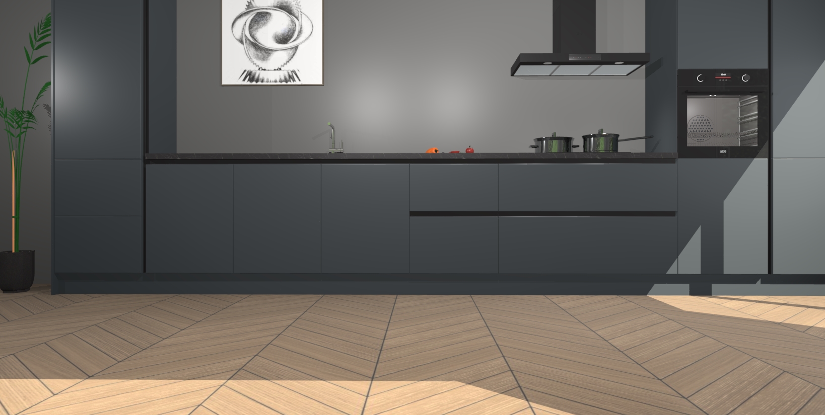 Inclusief plinten, stelpoten en werkblad