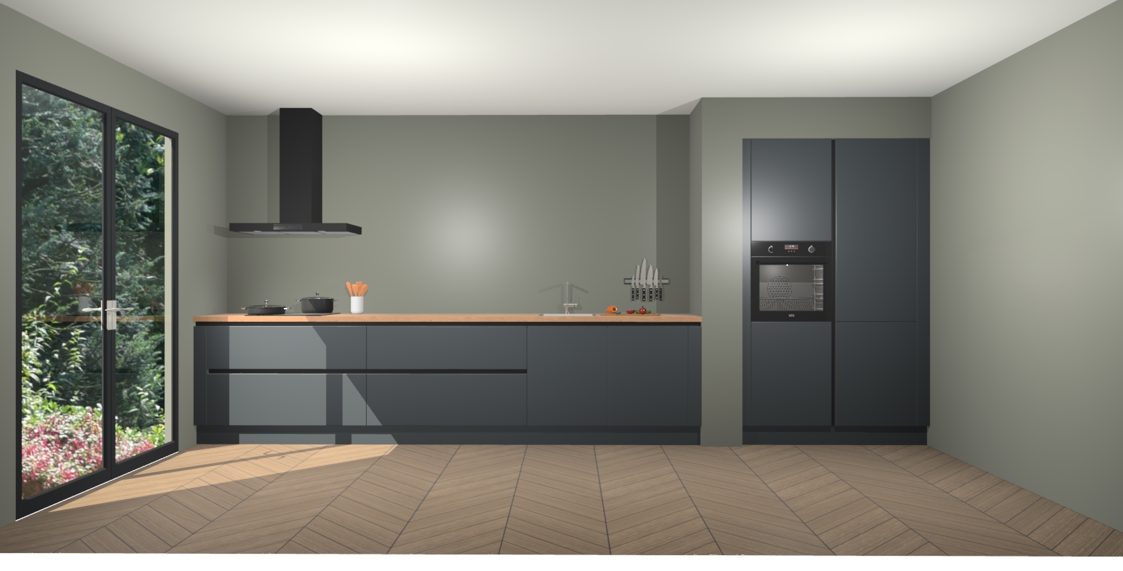 Maak kennis met de Onyxgrijze greeploze keuken Calgary - de perfecte aanvulling voor uw moderne keuken! Ervaar tijdloos design, elegantie en een chique uitstraling met onze handgrepen, soft-close deuren en veel opbergruimte. Dit alles wordt aangeboden tegen een vaste lage prijs voor ongeëvenaarde Duitse keukenkwaliteit!