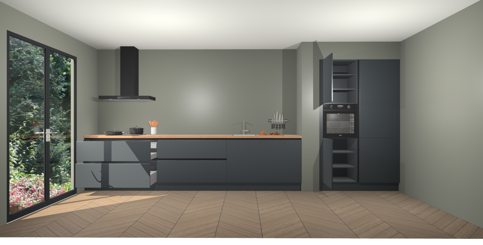 Onze Onyxgrijze greeploze keuken Calgary gaat niet alleen lang mee, maar biedt ook een onklopbare prijs. We garanderen dat we nooit een extravagant prijskaartje zullen hanteren omdat we geen compromissen sluiten op het vlak van kwaliteit - gewoon verfijnd Duits vakmanschap voor de juiste prijs. Profiteer nu en investeer in dit tijdloze meesterwerk voordat de voorraad op is!