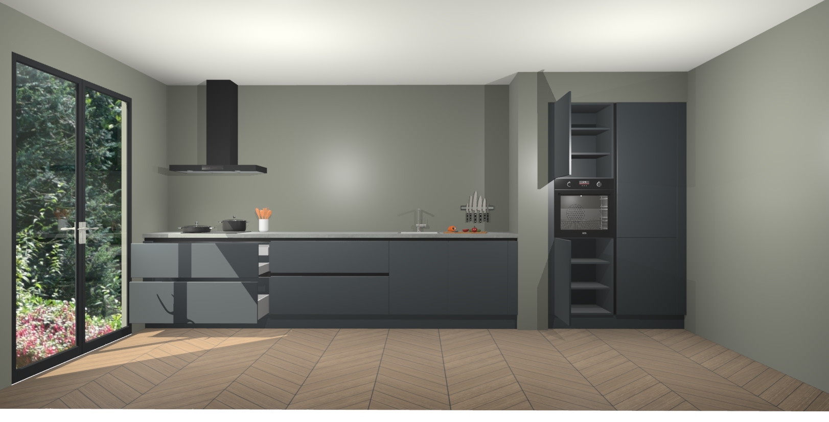 Maak kennis met de Onyxgrijze greeploze keuken Calgary - de perfecte aanvulling voor uw moderne keuken! Ervaar tijdloos design, elegantie en een chique uitstraling met onze handgrepen, soft-close deuren en veel opbergruimte. Dit alles wordt aangeboden tegen een vaste lage prijs voor ongeëvenaarde Duitse keukenkwaliteit!
