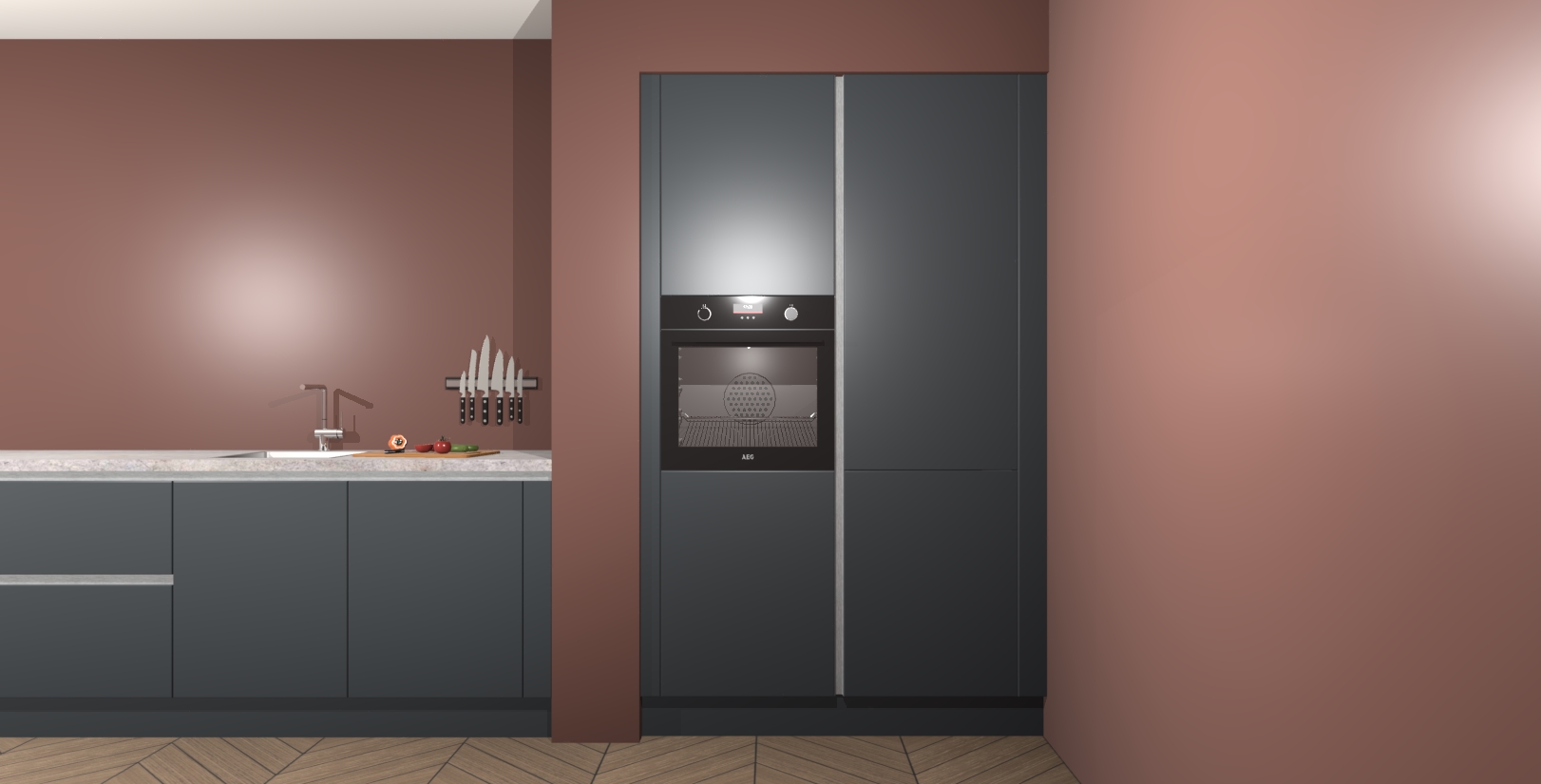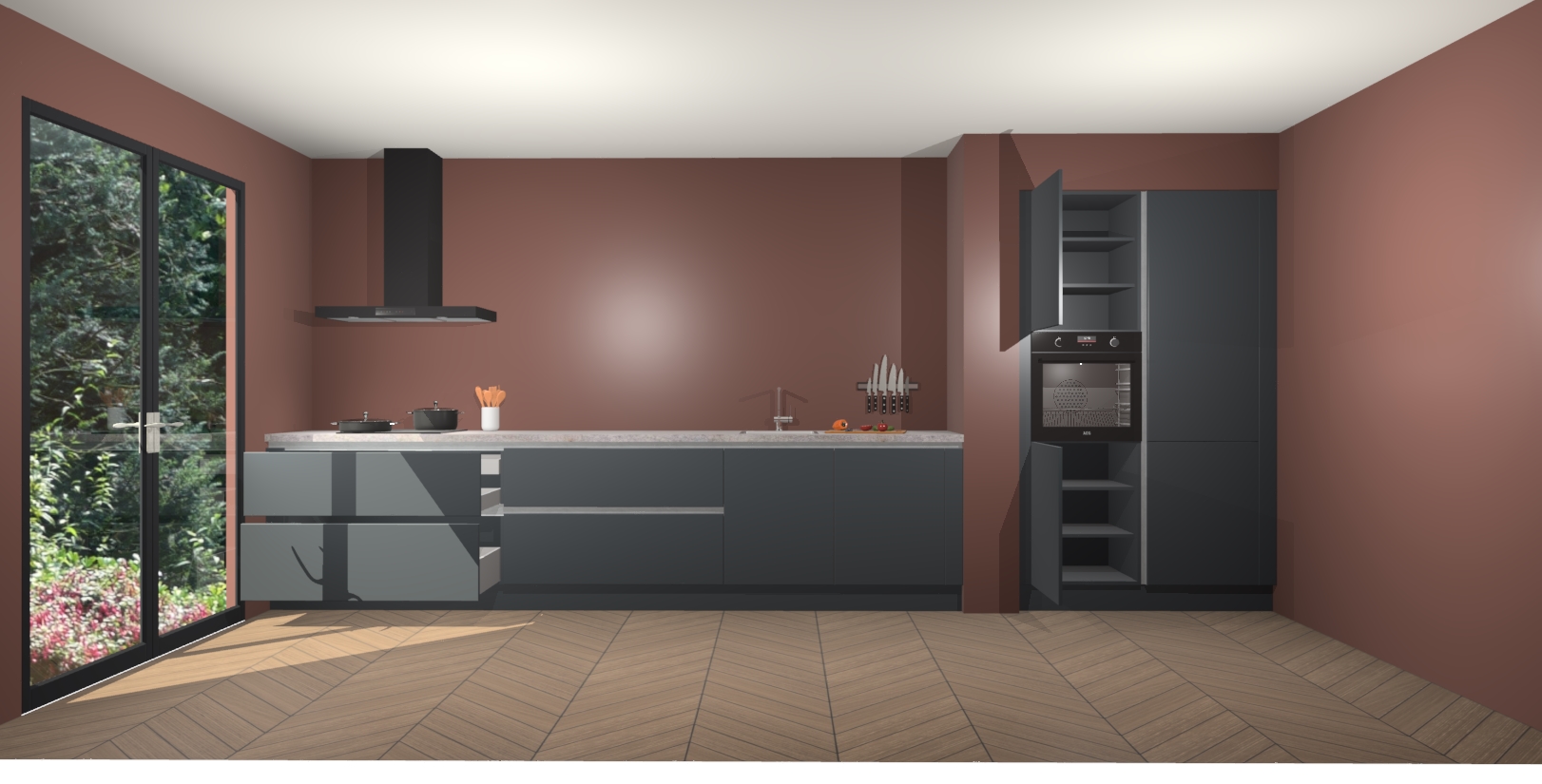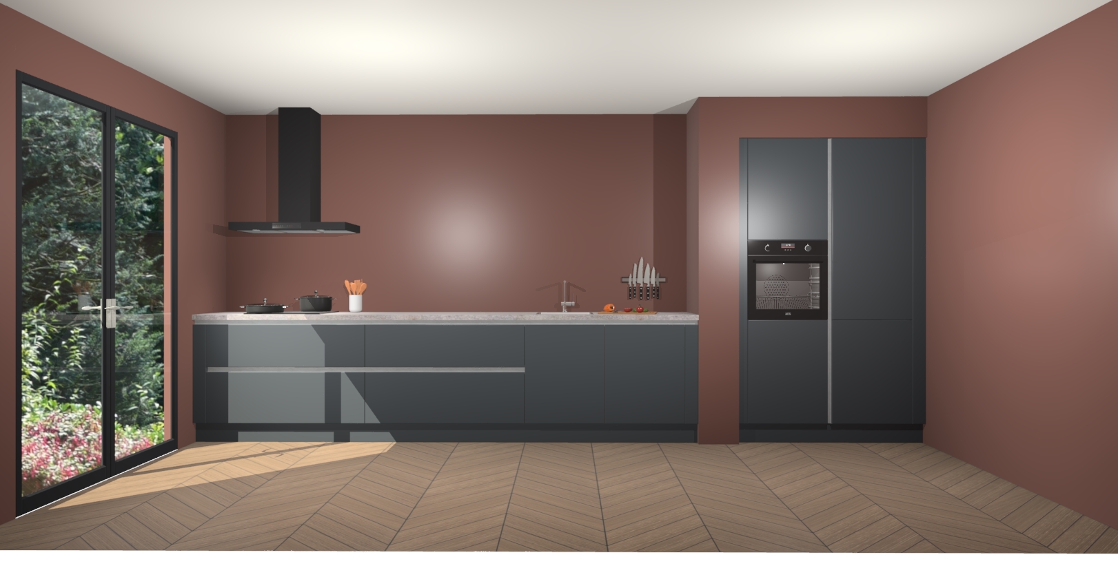 Maak kennis met de Onyxgrijze greeploze keuken Calgary - de perfecte aanvulling voor uw moderne keuken! Ervaar tijdloos design, elegantie en een chique uitstraling met onze handgrepen, soft-close deuren en veel opbergruimte. Dit alles wordt aangeboden tegen een vaste lage prijs voor ongeëvenaarde Duitse keukenkwaliteit!