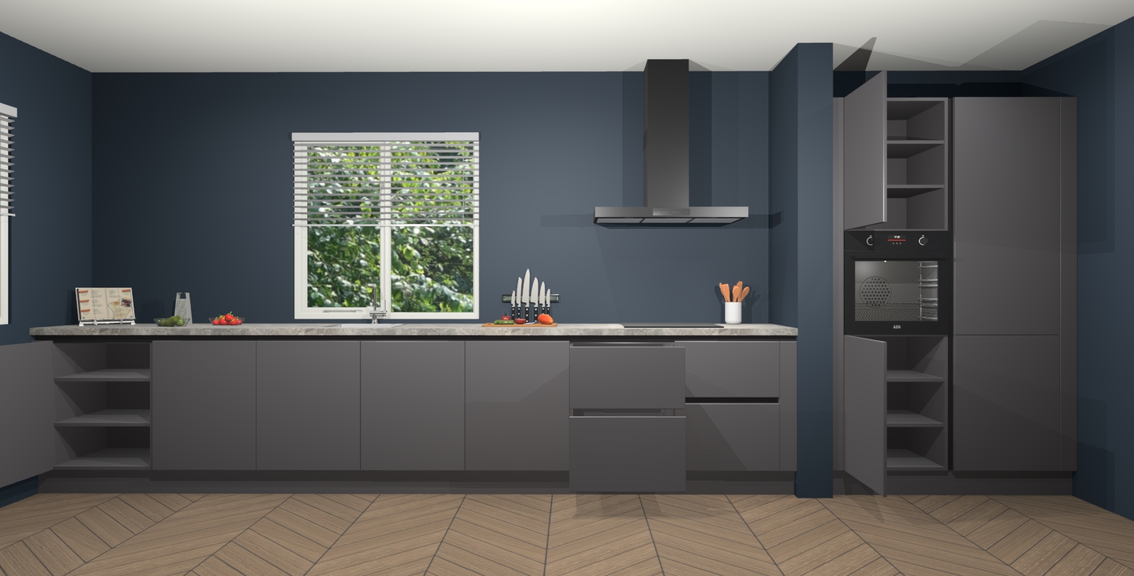 Maak kennis met de Onyxgrijze keuken Elzas - de perfecte aanvulling voor uw moderne keuken! Ervaar tijdloos design, elegantie en een chique uitstraling met onze handgrepen, soft-close deuren en veel opbergruimte. Dit alles wordt aangeboden tegen een vaste lage prijs voor ongeëvenaarde Duitse keukenkwaliteit!