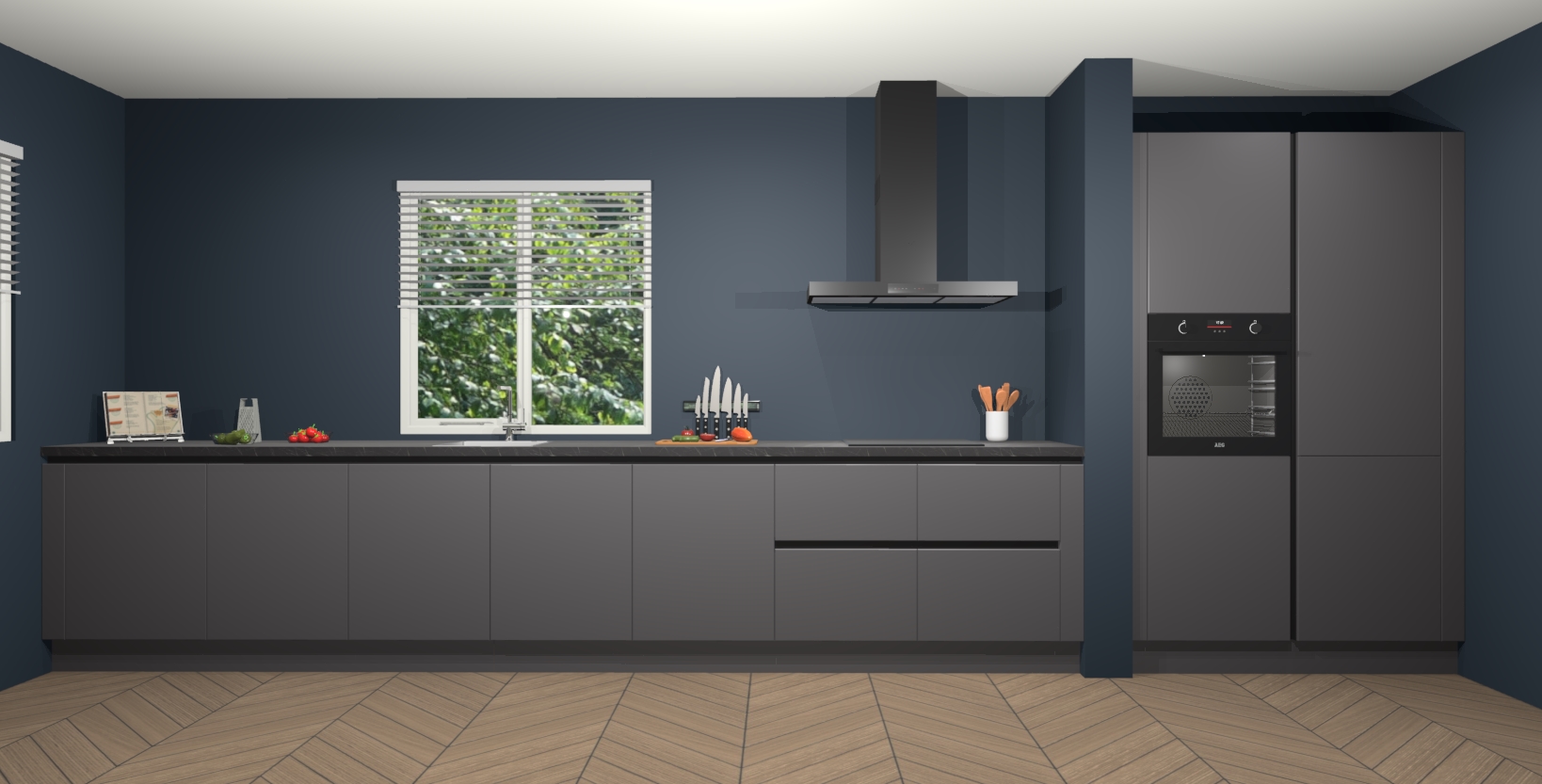 Maak kennis met de Onyxgrijze keuken Elzas - de perfecte aanvulling voor uw moderne keuken! Ervaar tijdloos design, elegantie en een chique uitstraling met onze handgrepen, soft-close deuren en veel opbergruimte. Dit alles wordt aangeboden tegen een vaste lage prijs voor ongeëvenaarde Duitse keukenkwaliteit!