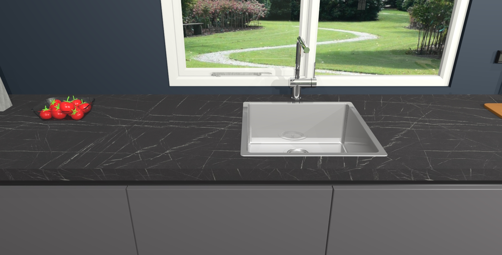 Met de Onyxgrijze keuken Elzas Maakt u van uw keuken het pronkstuk van uw huis. Stijlvol en toch praktisch, de nieuwste look voor wie meer waarde en charme aan zijn huis wil toevoegen. Met prachtige handgrepen die zich lenen voor een klassieke stijlbron, zal u niet teleurgesteld zijn in het resultaat. De soft-close deurscharnieren geven een gevoel van luxe omdat ze zachtjes bewegen zonder storende of krakende geluiden te veroorzaken.