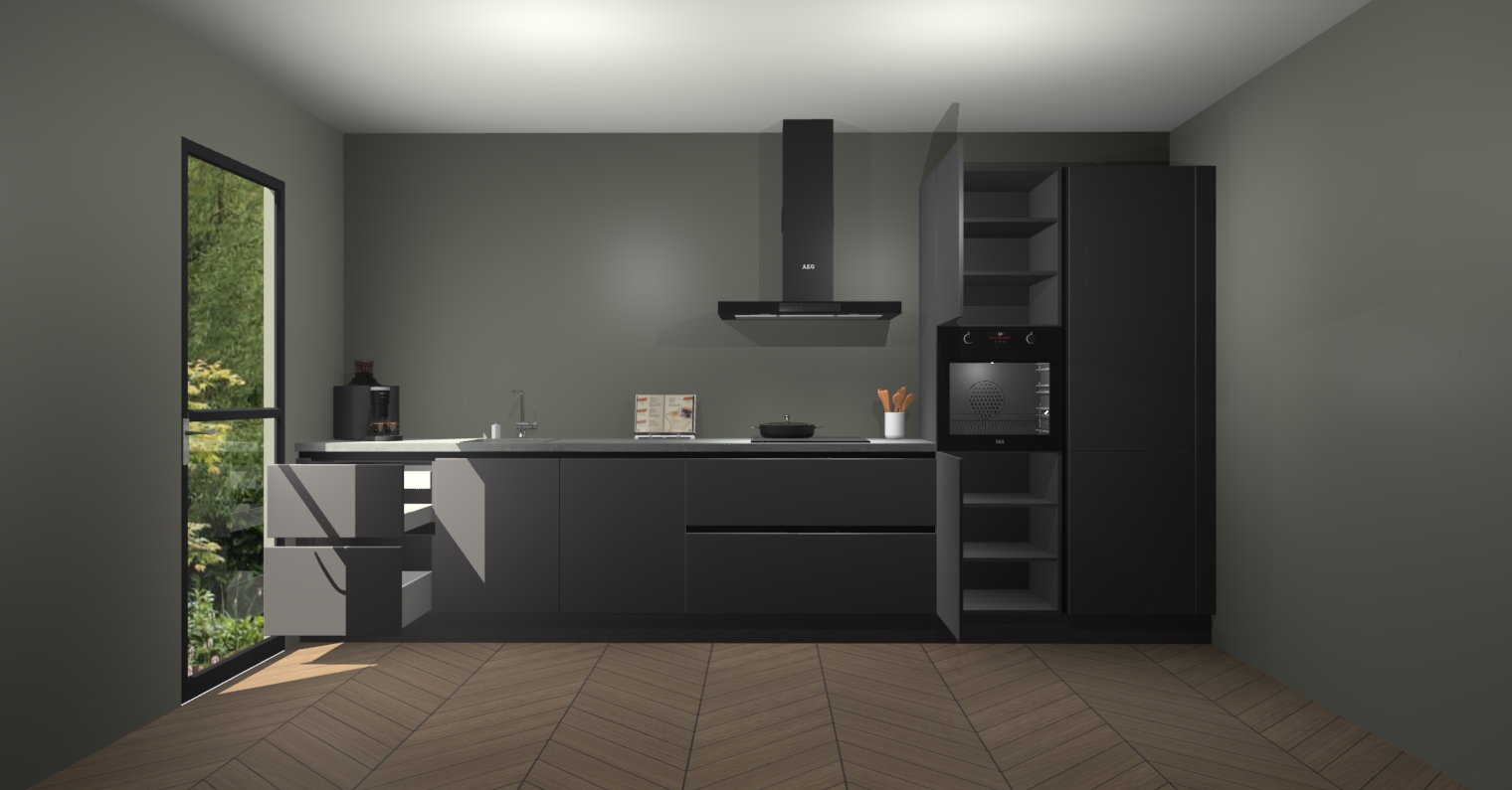 De Onyxgrijze greeploze keuken Leuven is de perfecte mix van modern en tijdloos design. Met zijn prachtige glazen deuren op de bovenkastjes voegt hij echt iets speciaals en unieks toe aan elke keuken. En met vijf ingebouwde apparaten inbegrepen - een oven, inductiekookplaat, afzuigkap, vaatwasser en koelkast - kunt u deze keuken echt helemaal van uzelf maken! U kunt na bestelling ook upgraden naar AEG voor een nog hogere kwaliteitservaring.