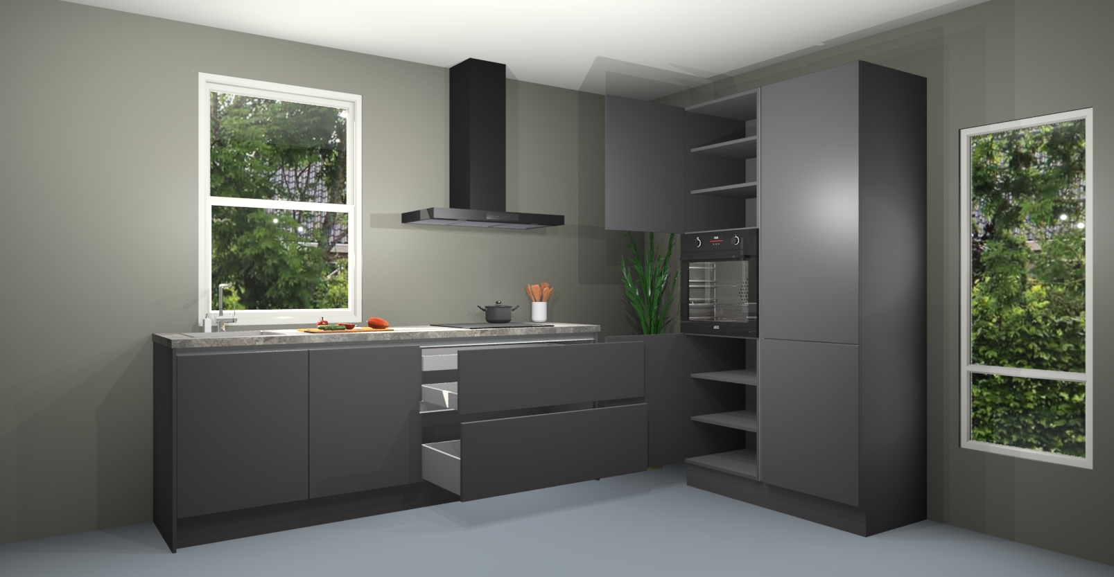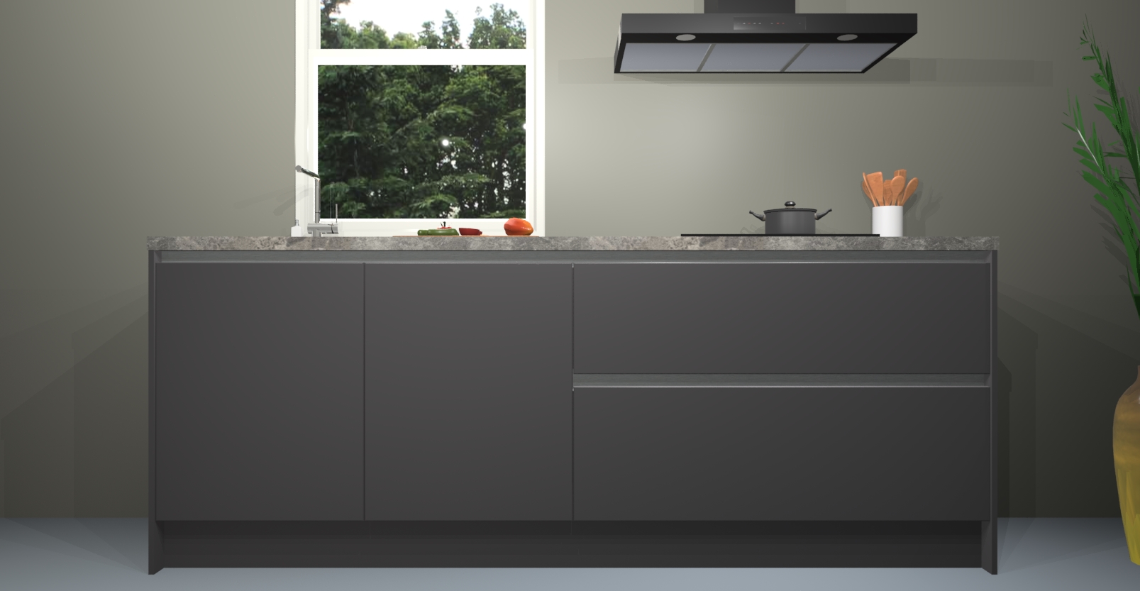 De Onyxgrijze greeploze keuken Monaco heeft voldoende opbergruimte om uw keukenbenodigdheden georganiseerd en netjes te houden. Geniet van het gemak van de soft-close deuren, die deze stijlvolle look perfect afmaken. Maar dat is nog niet alles. Met de Onyxgrijze greeploze keuken Monaco krijgt u maar liefst 5 ingebouwde apparaten: een oven, inductiekookplaat, afzuigkap, vaatwasser en koelkast. Deze kunnen gemakkelijk worden geüpgraded naar AEG als ze besteld zijn.