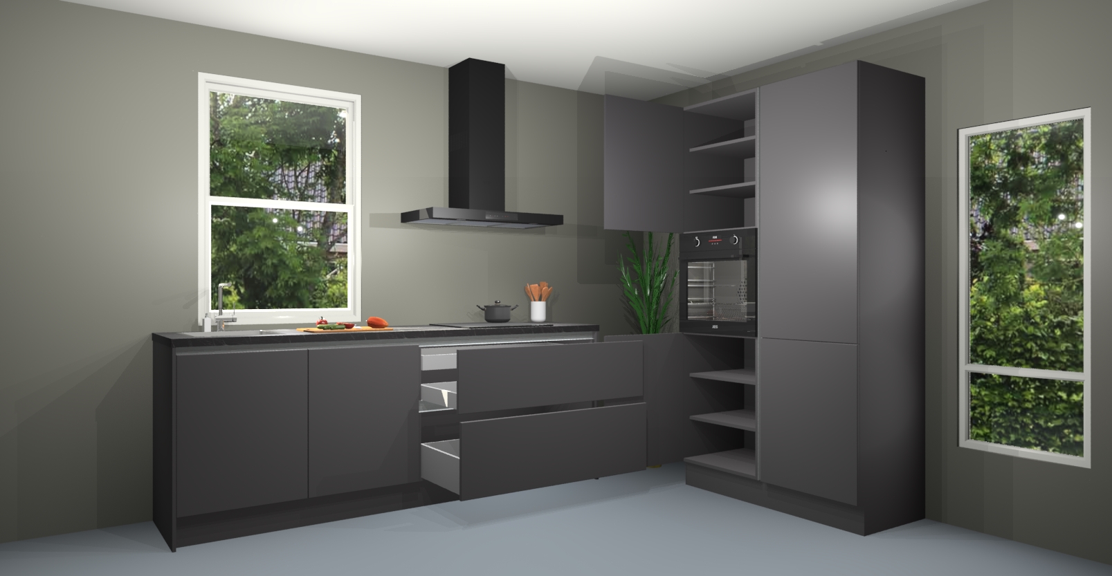 De Onyxgrijze greeploze keuken Monaco heeft voldoende opbergruimte om uw keukenbenodigdheden georganiseerd en netjes te houden. Geniet van het gemak van de soft-close deuren, die deze stijlvolle look perfect afmaken. Maar dat is nog niet alles. Met de Onyxgrijze greeploze keuken Monaco krijgt u maar liefst 5 ingebouwde apparaten: een oven, inductiekookplaat, afzuigkap, vaatwasser en koelkast. Deze kunnen gemakkelijk worden geüpgraded naar AEG als ze besteld zijn.