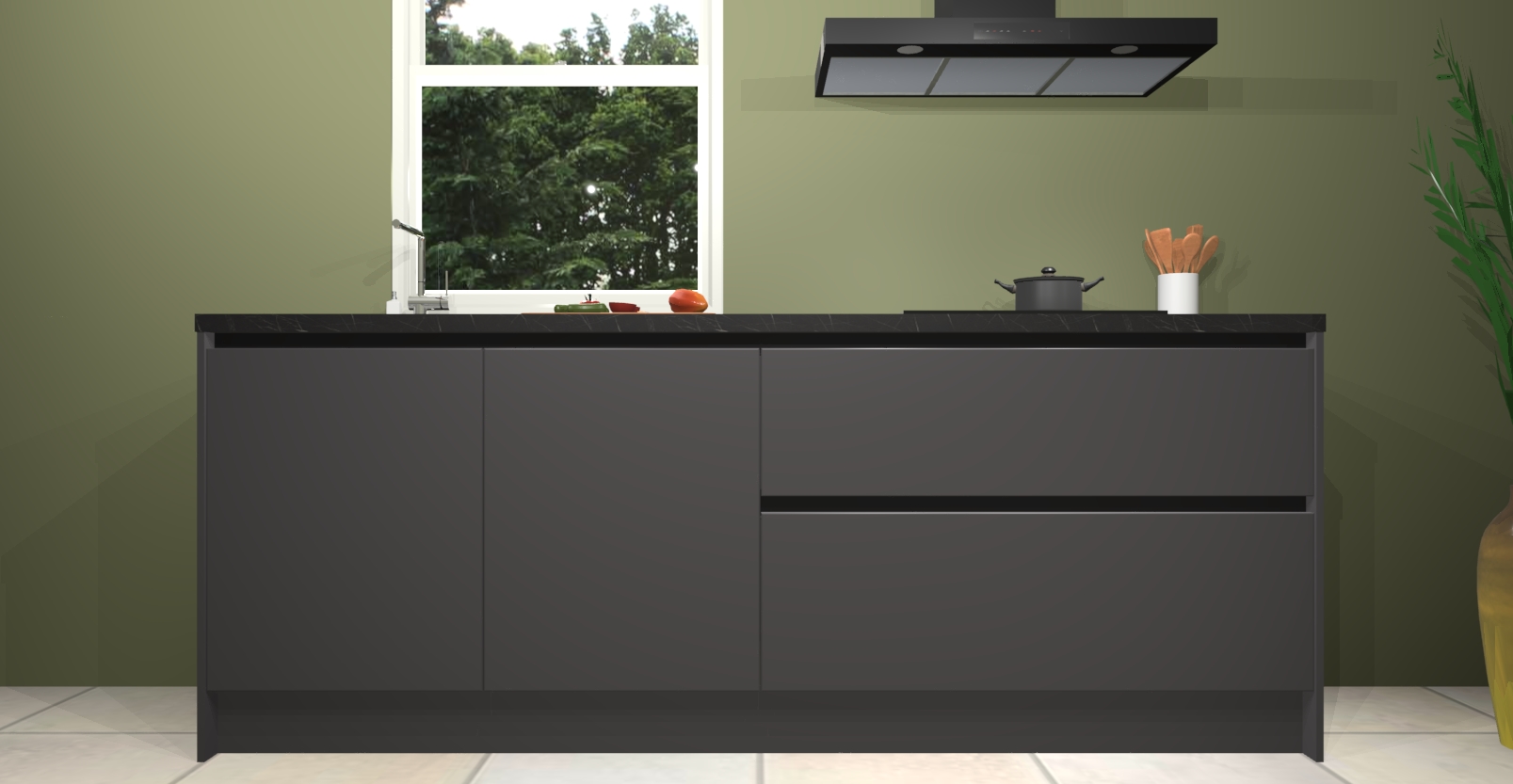 De Onyxgrijze greeploze keuken Monaco heeft voldoende opbergruimte om uw keukenbenodigdheden georganiseerd en netjes te houden. Geniet van het gemak van de soft-close deuren, die deze stijlvolle look perfect afmaken. Maar dat is nog niet alles. Met de Onyxgrijze greeploze keuken Monaco krijgt u maar liefst 5 ingebouwde apparaten: een oven, inductiekookplaat, afzuigkap, vaatwasser en koelkast. Deze kunnen gemakkelijk worden geüpgraded naar AEG als ze besteld zijn.