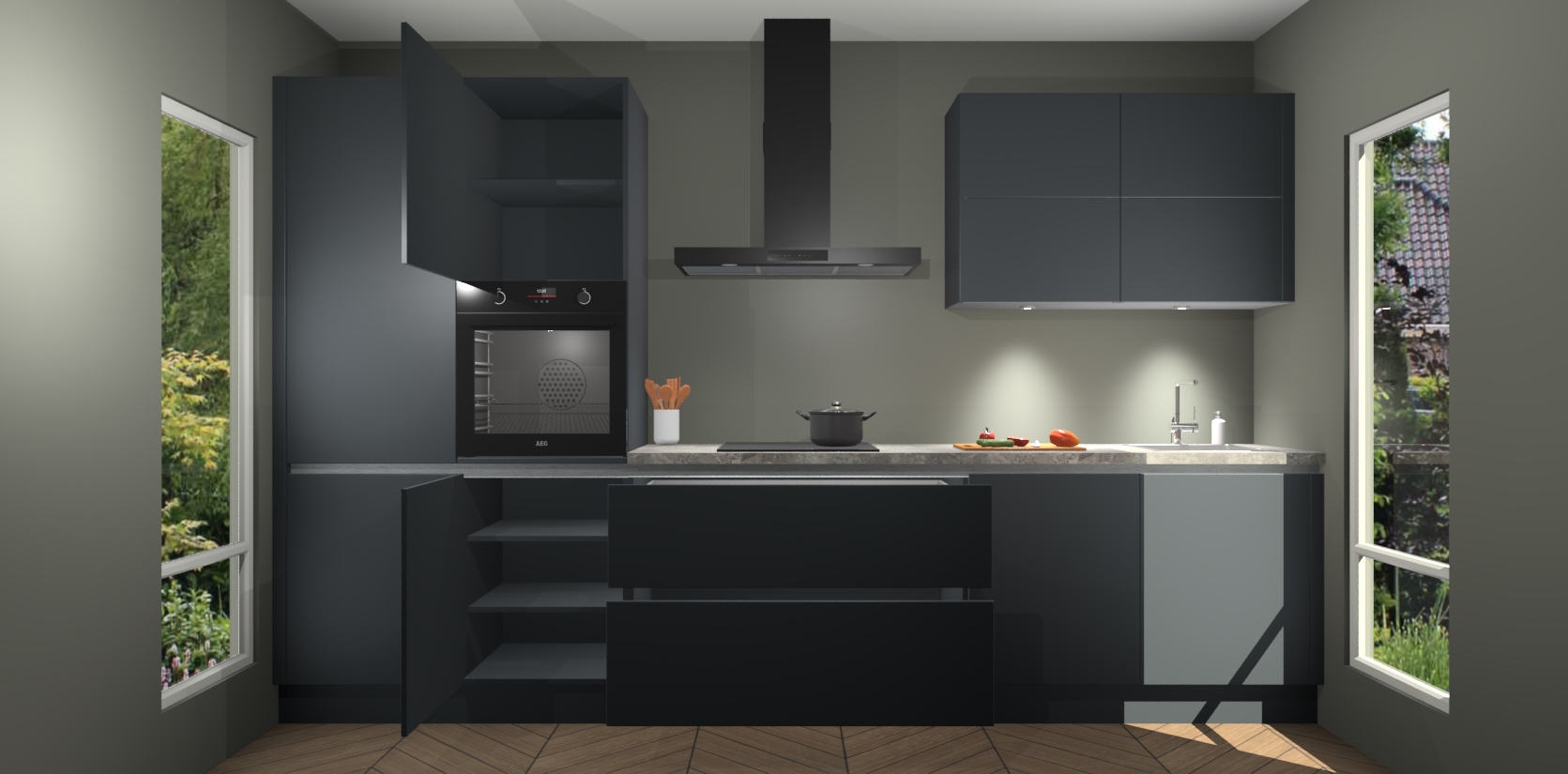 Maak kennis met de nieuwe Onyxgrijze greeploze Keuken Parijs - de perfecte designcombinatie van gemak, moderne elegantie en ultramodern design. Met een gemakkelijk te reinigen Onyxgrijze afwerking, zal de slankheid van deze keuken zeker een vleugje luxe toevoegen aan elke ruimte die hij inneemt.
