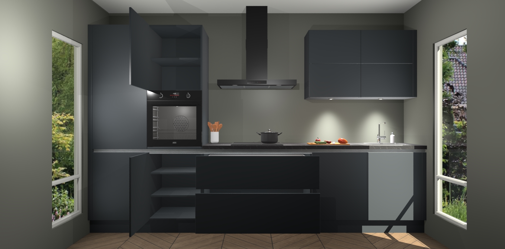 Maak kennis met de nieuwe Onyxgrijze greeploze Keuken Parijs - de perfecte designcombinatie van gemak, moderne elegantie en ultramodern design. Met een gemakkelijk te reinigen Onyxgrijze afwerking, zal de slankheid van deze keuken zeker een vleugje luxe toevoegen aan elke ruimte die hij inneemt.