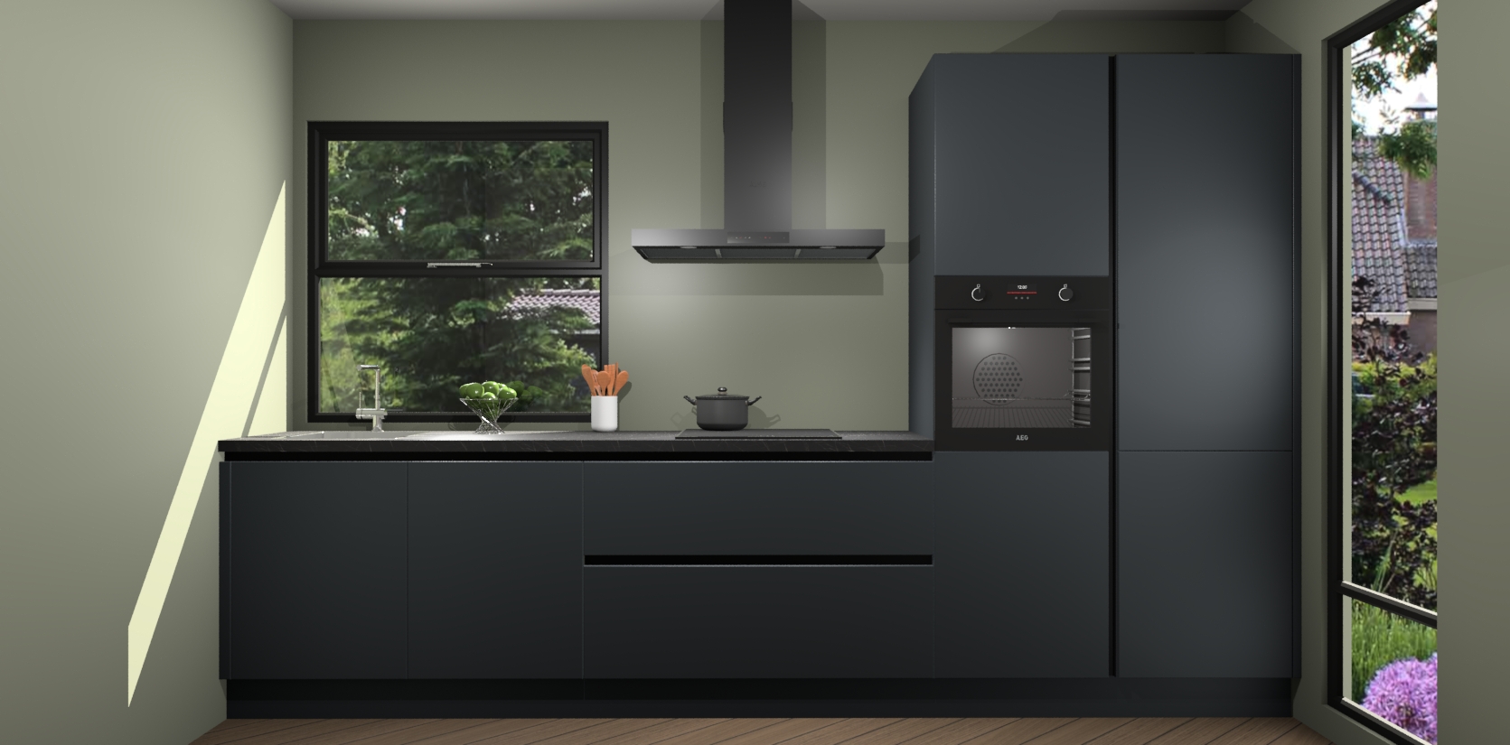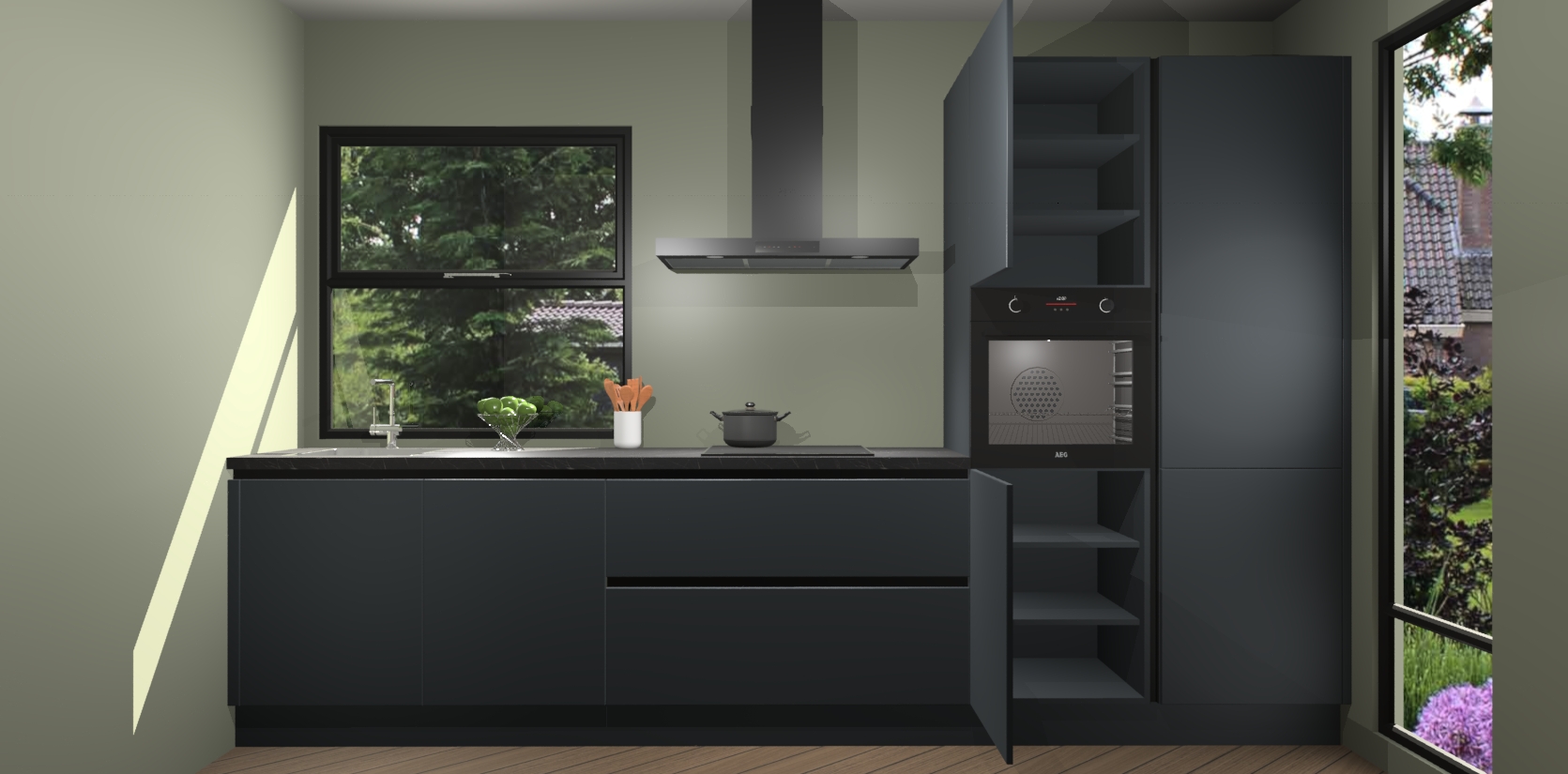 Maak kennis met de Onyxgrijze greeploze keuken Rome - de perfecte manier om uw kookervaring te upgraden! Met slanke greeploze deuren en een handig softclose systeem bespaar u uzelf tijd en moeite in de keuken terwijl u een sfeer van verfijning en luxe creëert.