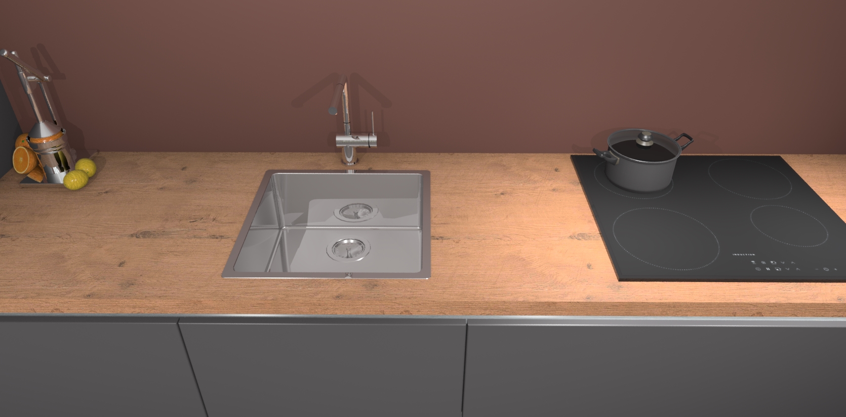 Inclusief plinten, stelpoten en werkblad