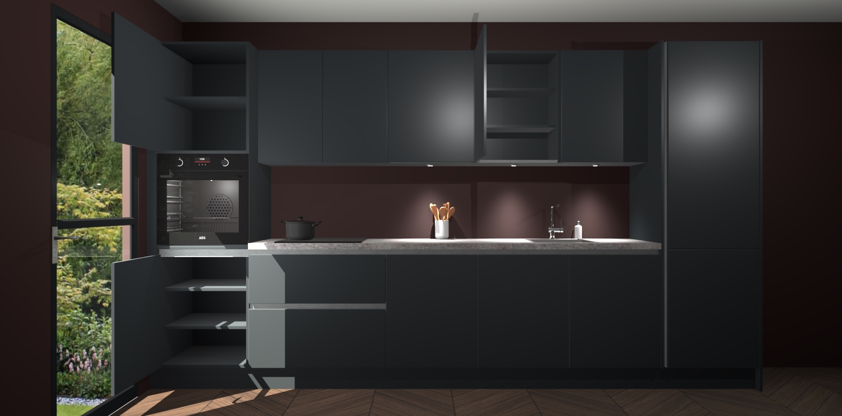 Dit is de perfecte keuken voor wie op zoek is naar een luxueuze stijl zonder zijn portemonnee te legen! Het chique ontwerp van de onyxgrijze greeploze keuken Wels voegt dat vleugje verfijning toe aan elk huis. Het gemak van voorgemonteerde kasten bespaart u talloze uren tijd en energie, zodat u veel sneller dan verwacht kunt beginnen te genieten van uw prachtige nieuwe keuken. Bovendien bedraagt de levertijd slechts 7 weken.