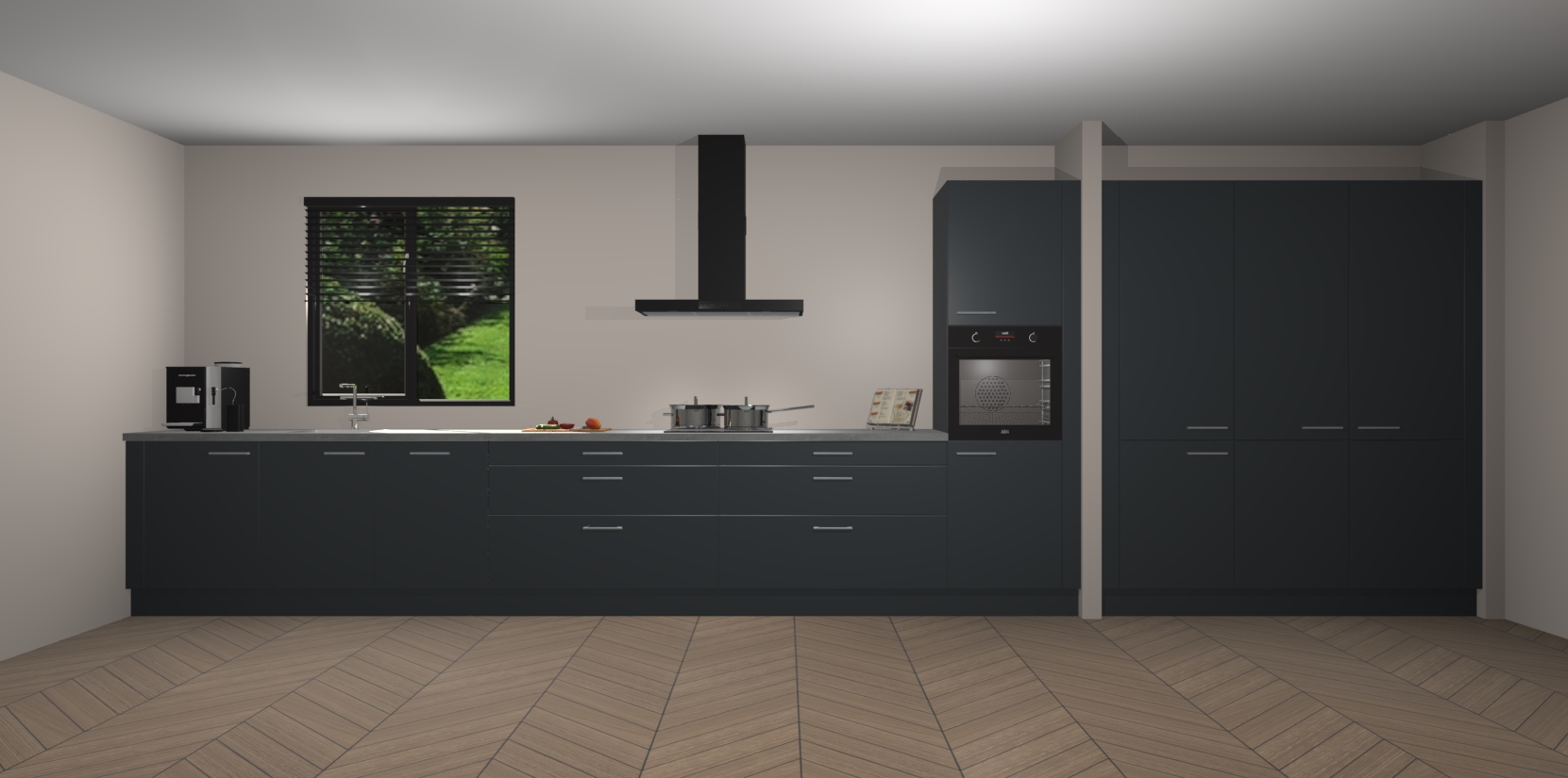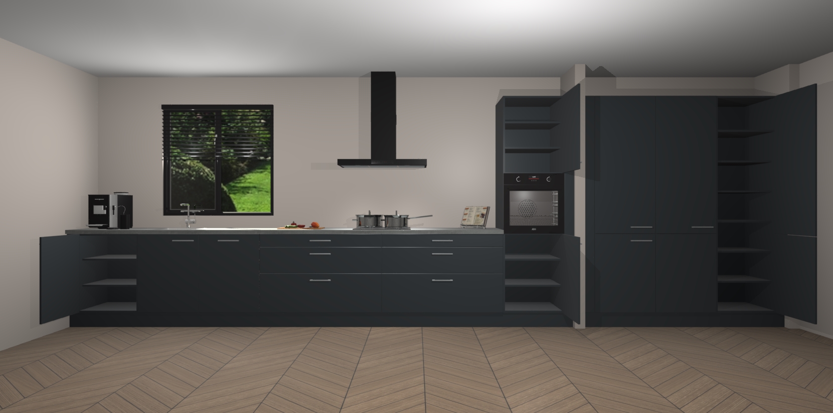 Een stijlvolle en praktische keuken als deze mag gezien worden. Dankzij de prachtige matte afwerking wordt de keuken gemakkelijk het middelpunt van uw huis - hij ziet er geweldig uit onder allerlei lichtomstandigheden, van dag tot nacht!