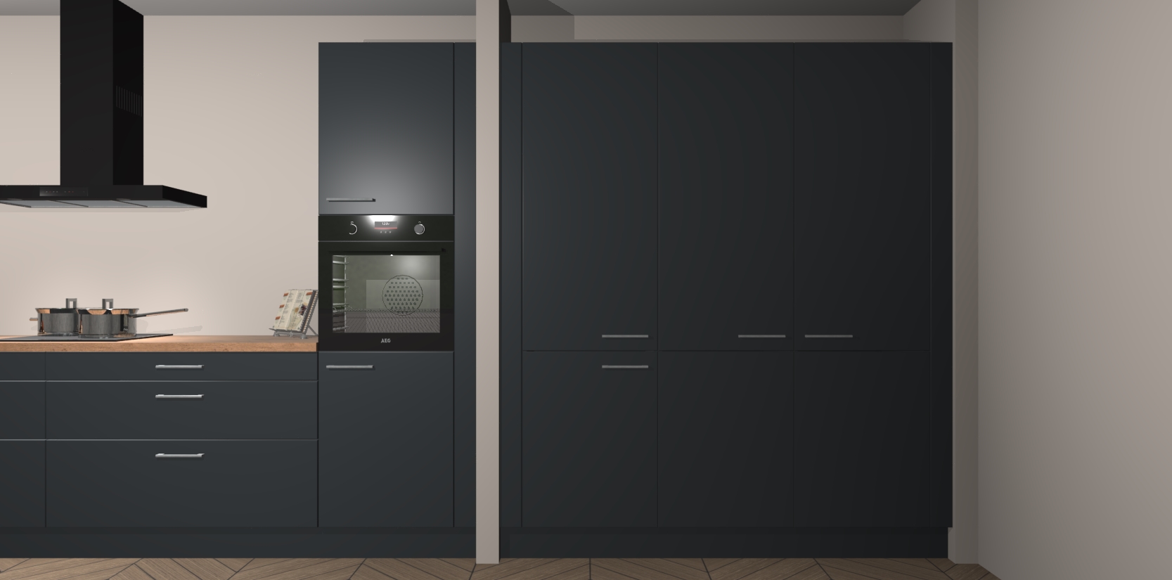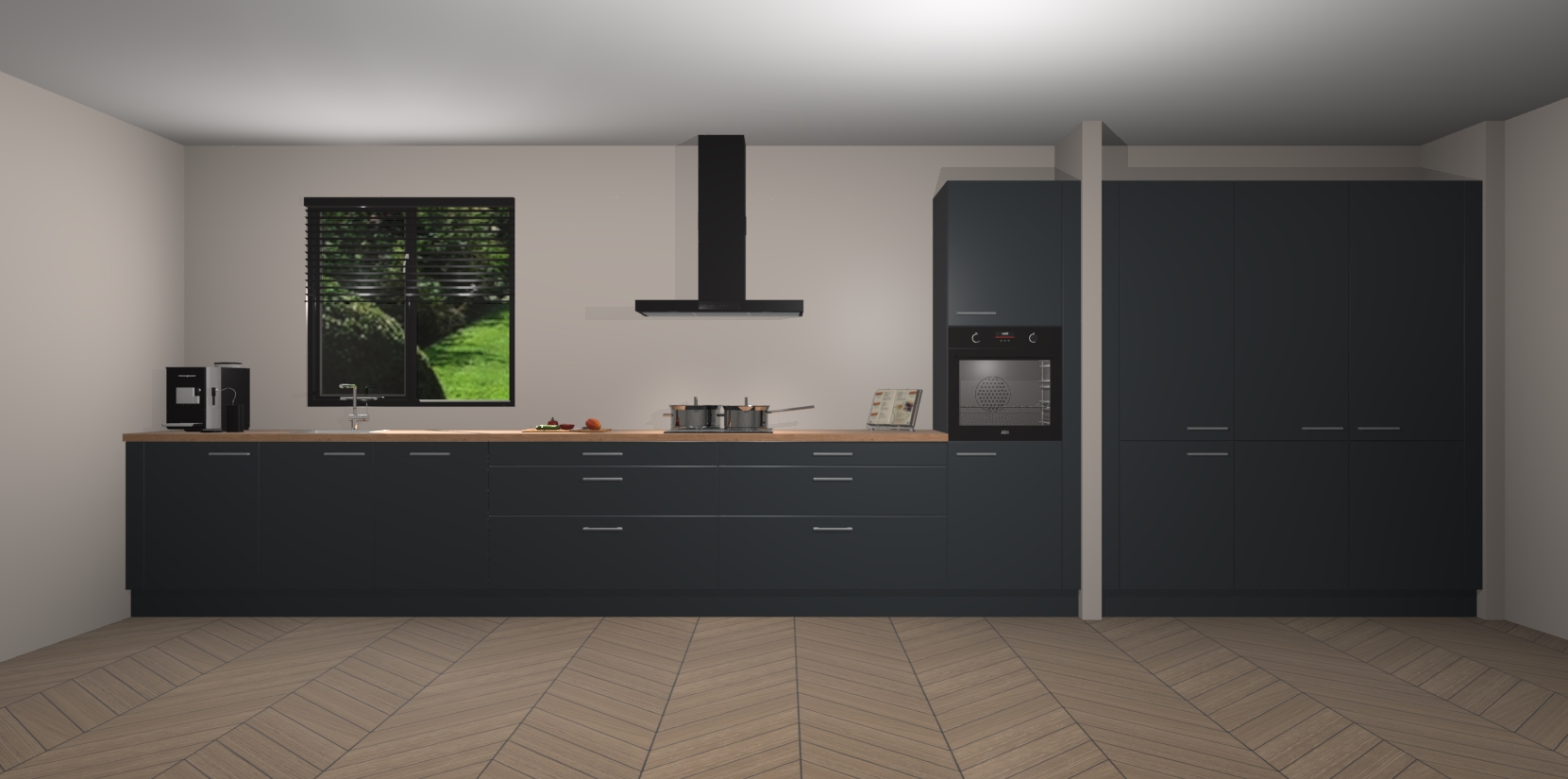 Een stijlvolle en praktische keuken als deze mag gezien worden. Dankzij de prachtige matte afwerking wordt de keuken gemakkelijk het middelpunt van uw huis - hij ziet er geweldig uit onder allerlei lichtomstandigheden, van dag tot nacht!