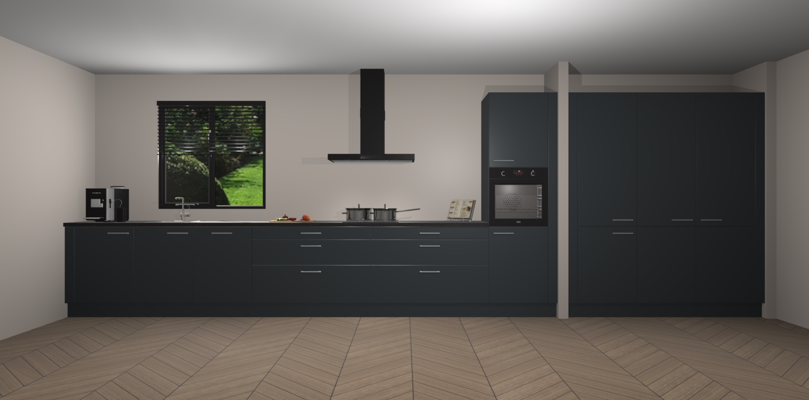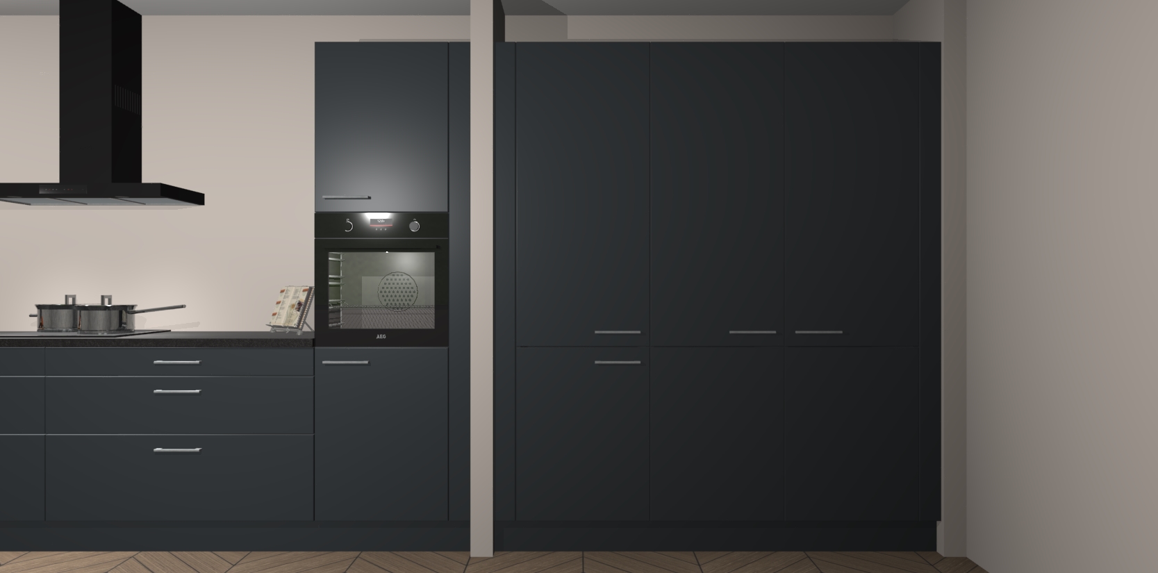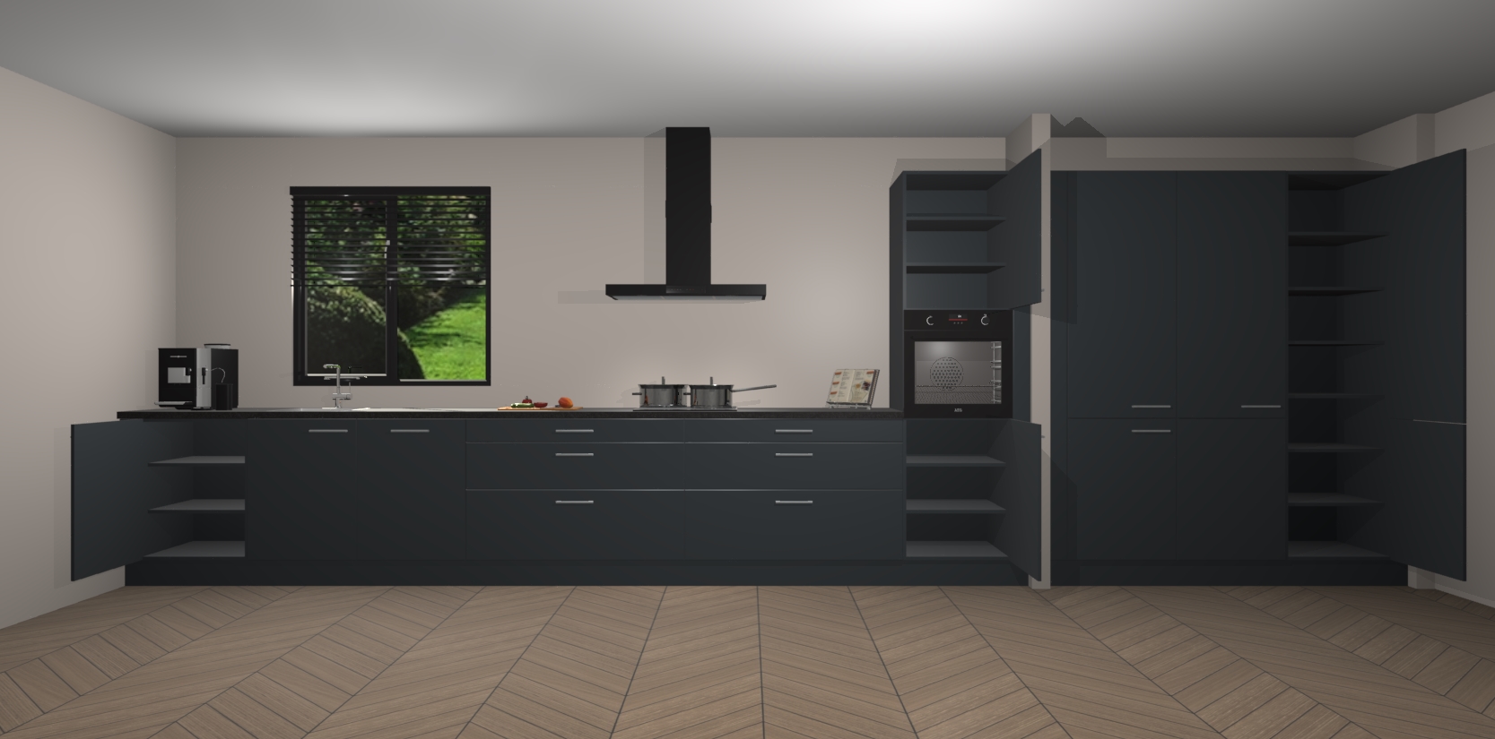 Een stijlvolle en praktische keuken als deze mag gezien worden. Dankzij de prachtige matte afwerking wordt de keuken gemakkelijk het middelpunt van uw huis - hij ziet er geweldig uit onder allerlei lichtomstandigheden, van dag tot nacht!