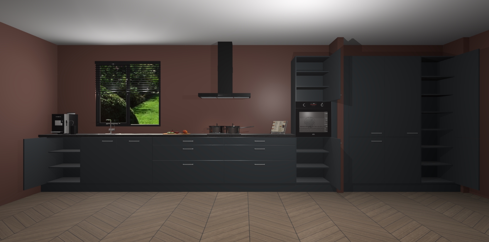 Een stijlvolle en praktische keuken als deze mag gezien worden. Dankzij de prachtige matte afwerking wordt de keuken gemakkelijk het middelpunt van uw huis - hij ziet er geweldig uit onder allerlei lichtomstandigheden, van dag tot nacht!