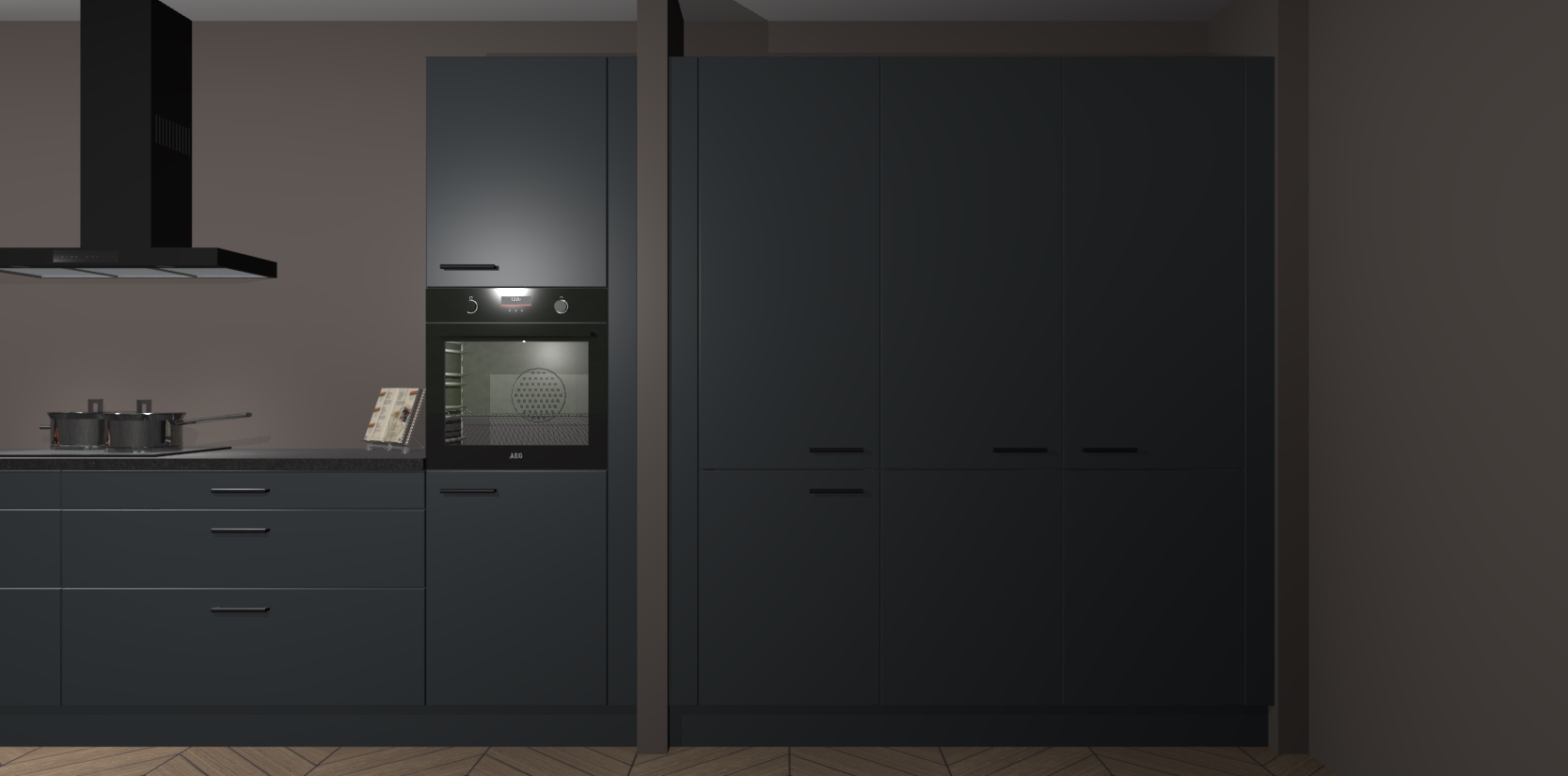 Een stijlvolle en praktische keuken als deze mag gezien worden. Dankzij de prachtige matte afwerking wordt de keuken gemakkelijk het middelpunt van uw huis - hij ziet er geweldig uit onder allerlei lichtomstandigheden, van dag tot nacht!