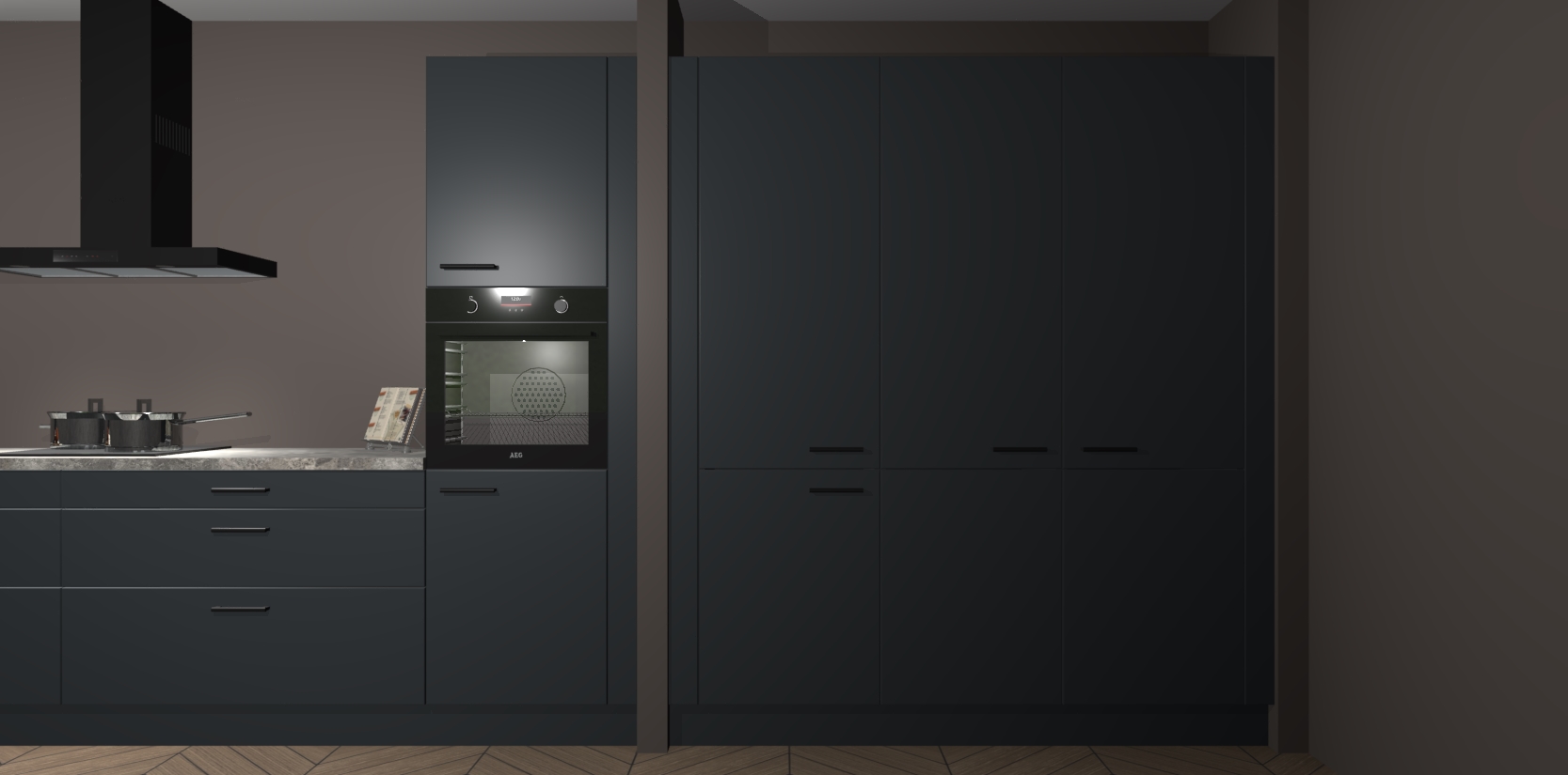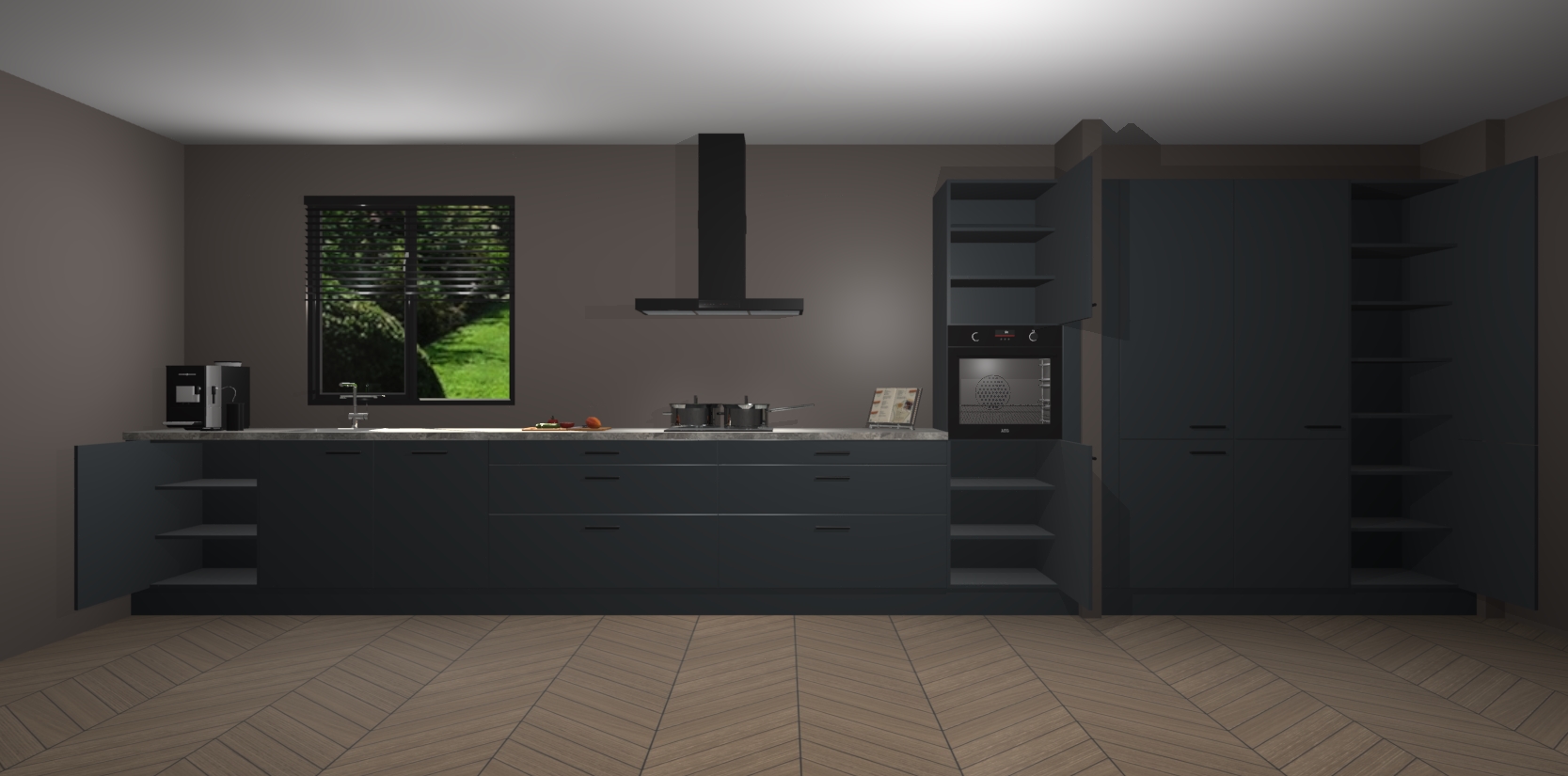 Een stijlvolle en praktische keuken als deze mag gezien worden. Dankzij de prachtige matte afwerking wordt de keuken gemakkelijk het middelpunt van uw huis - hij ziet er geweldig uit onder allerlei lichtomstandigheden, van dag tot nacht!
