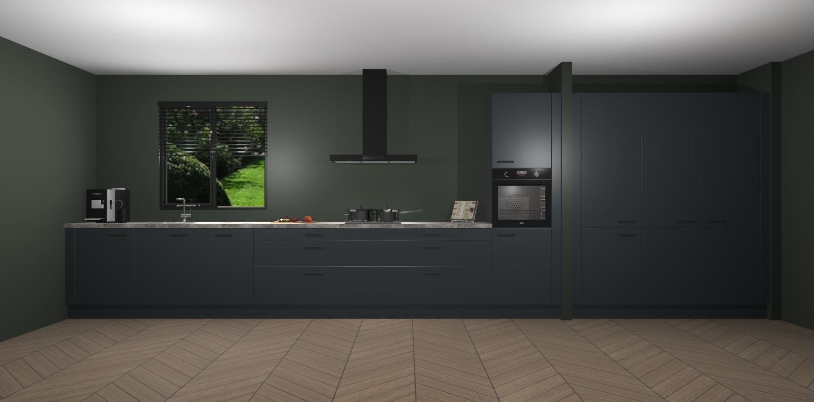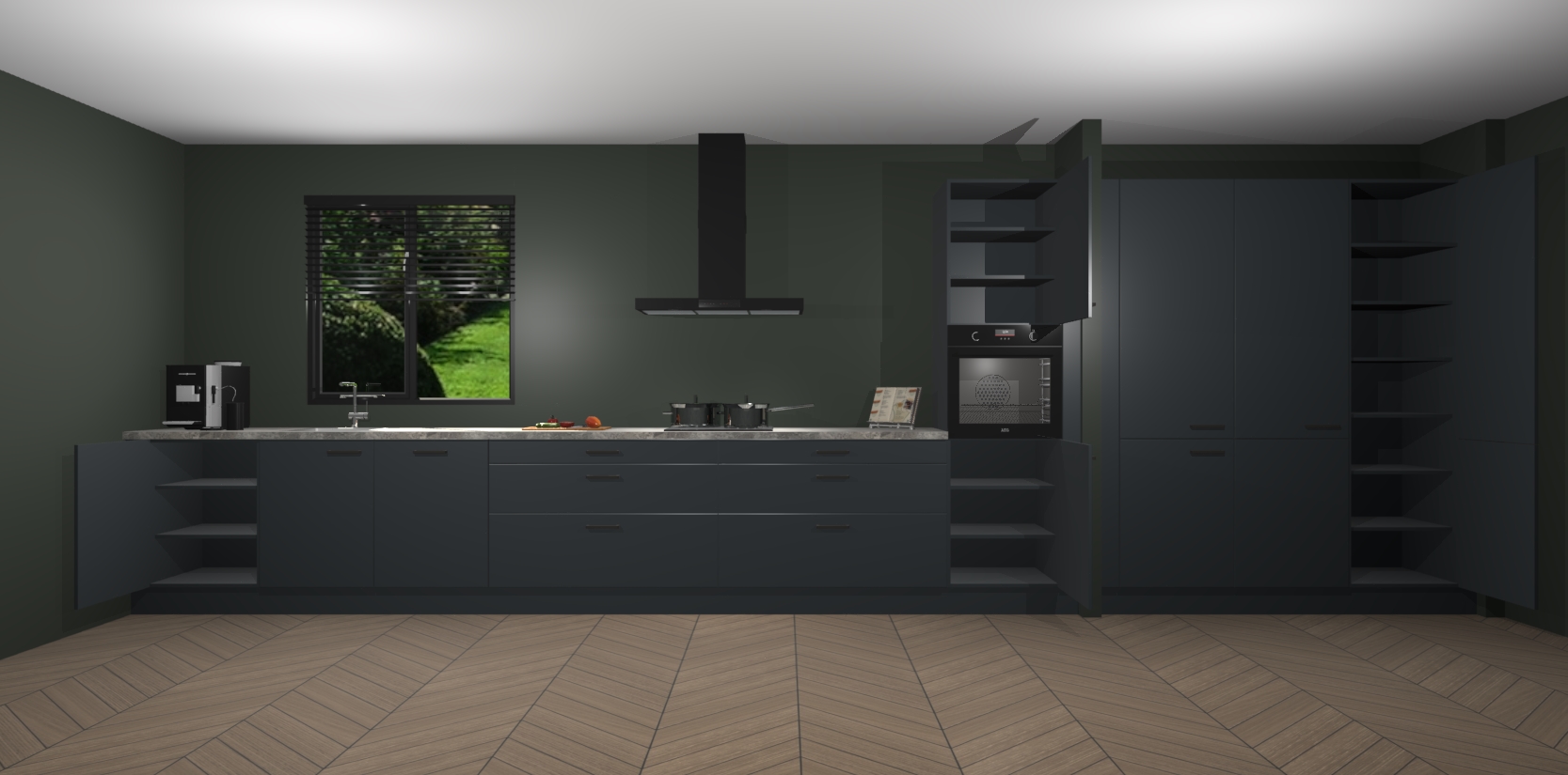 Een stijlvolle en praktische keuken als deze mag gezien worden. Dankzij de prachtige matte afwerking wordt de keuken gemakkelijk het middelpunt van uw huis - hij ziet er geweldig uit onder allerlei lichtomstandigheden, van dag tot nacht!