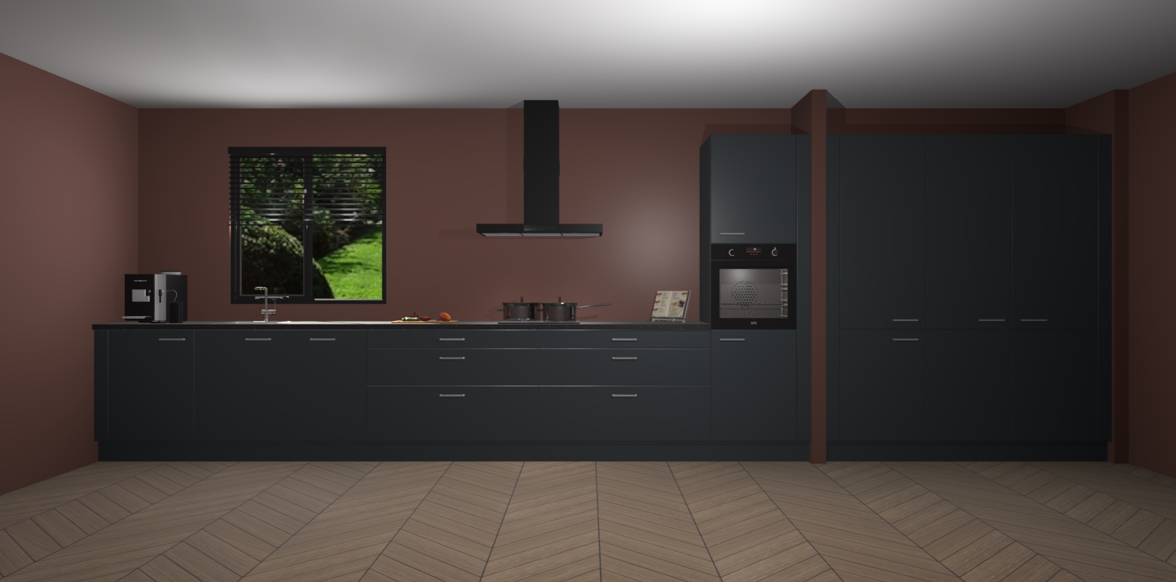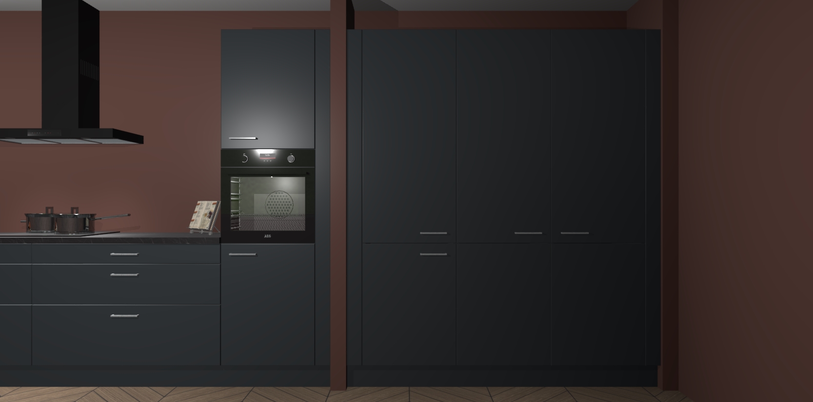 Een stijlvolle en praktische keuken als deze mag gezien worden. Dankzij de prachtige matte afwerking wordt de keuken gemakkelijk het middelpunt van uw huis - hij ziet er geweldig uit onder allerlei lichtomstandigheden, van dag tot nacht!