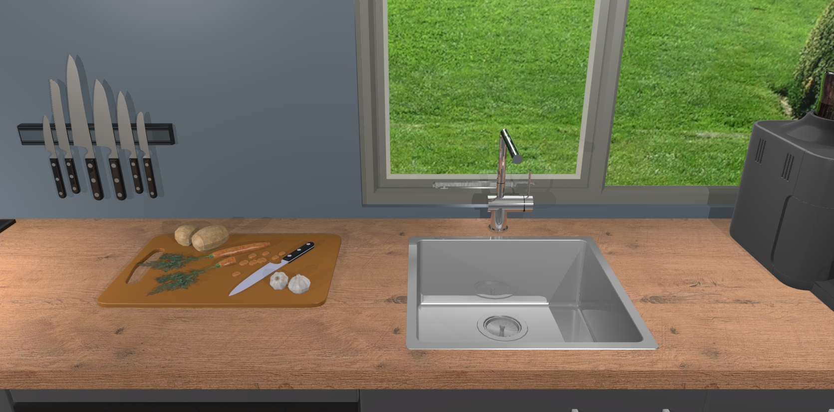 - De spoelbak is nog niet in gevreesd. Dit dient tijdens het werk gedaan te worden