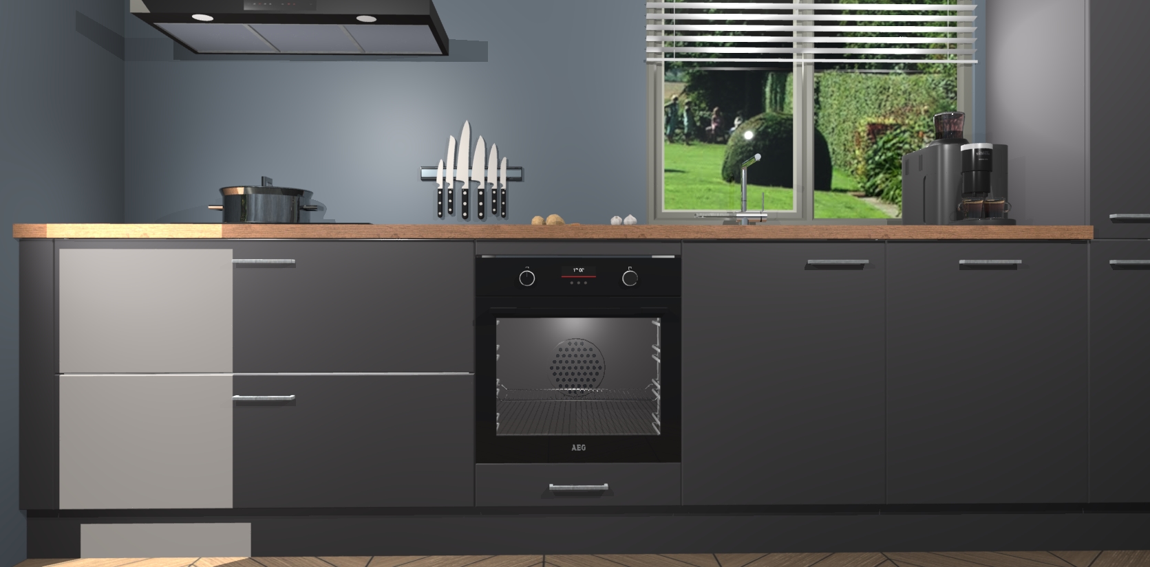 Maak kennis met de nieuwe Onyxgrijze keuken Antigua - een verbluffend, hoogwaardig keukenontwerp die uw ruimte gegarandeerd omtovert tot iets buitengewoons! Met zijn eigentijdse kastdeuren met luxueuze softclose systeem is de Onyxrijze keuken Antigua de perfecte keuze voor iedereen die de look en feel van zijn leefruimte wil opwaarderen.