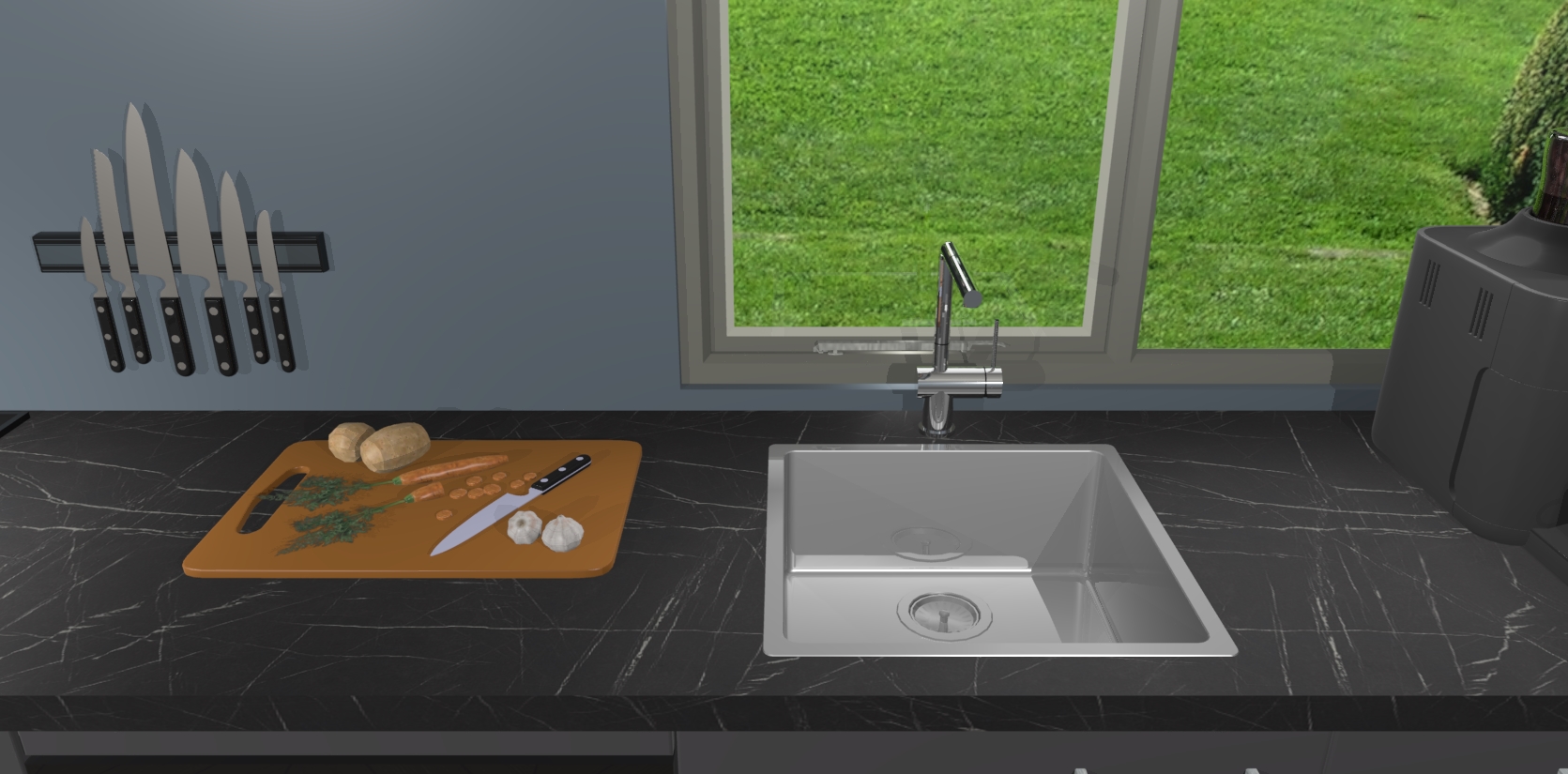 - De spoelbak is nog niet in gevreesd. Dit dient tijdens het werk gedaan te worden