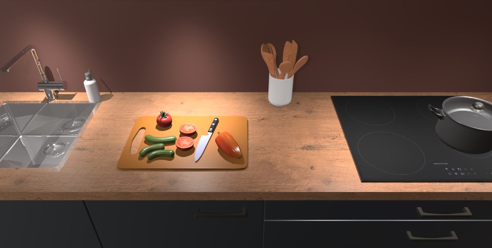 - Uitsparing van kookplaat, spoelbak en kraan dient u zelf te verzorgen.