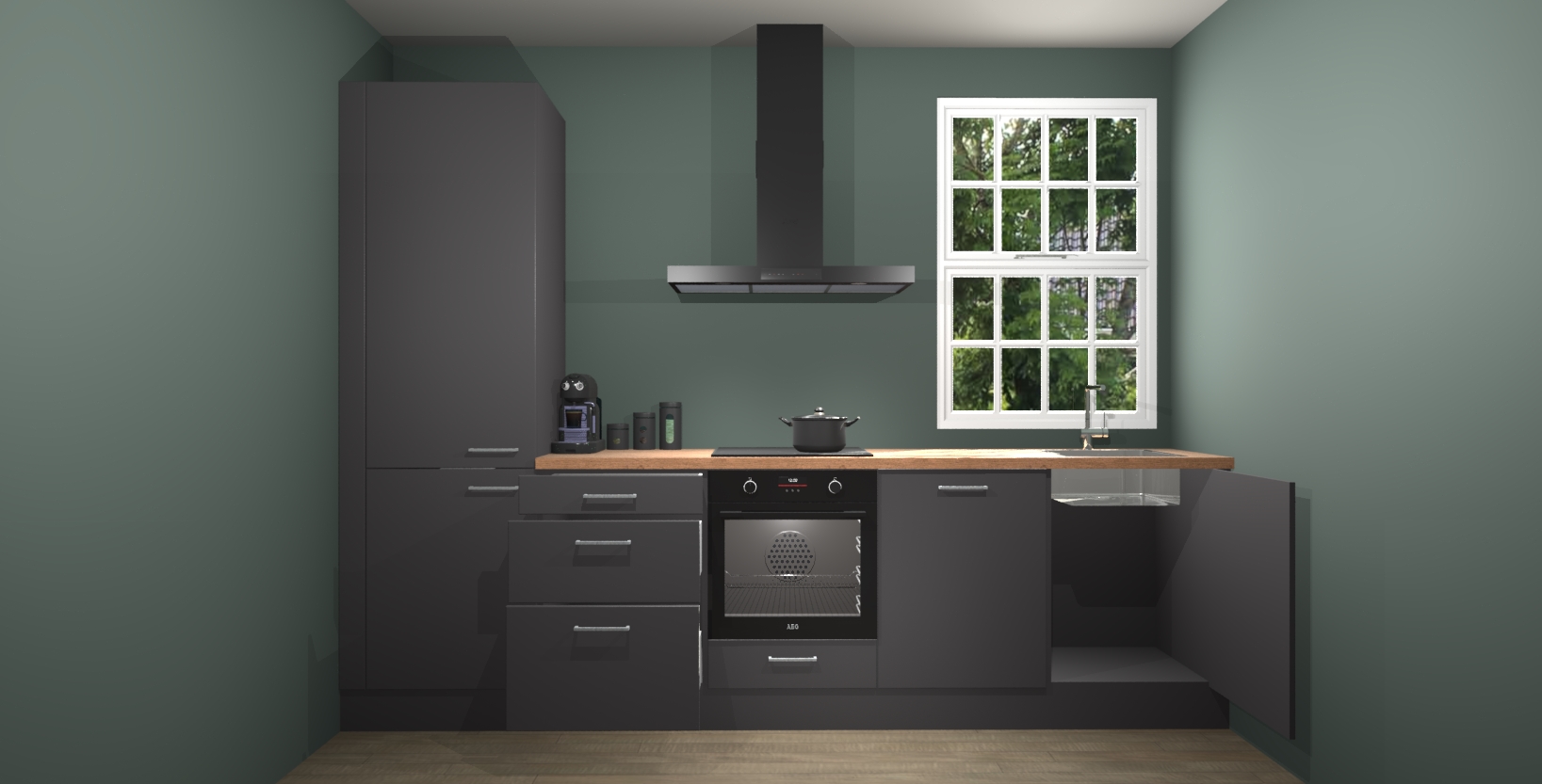 De onyxgrijze keuken Bangladesh is gemaakt van de beste materialen op de markt, dus u kunt erop vertrouwen dat hij u niet in de steek zal laten. Bovendien kunt u hem gemakkelijk upgraden naar het AEG-model als u er nog meer uit wilt halen!