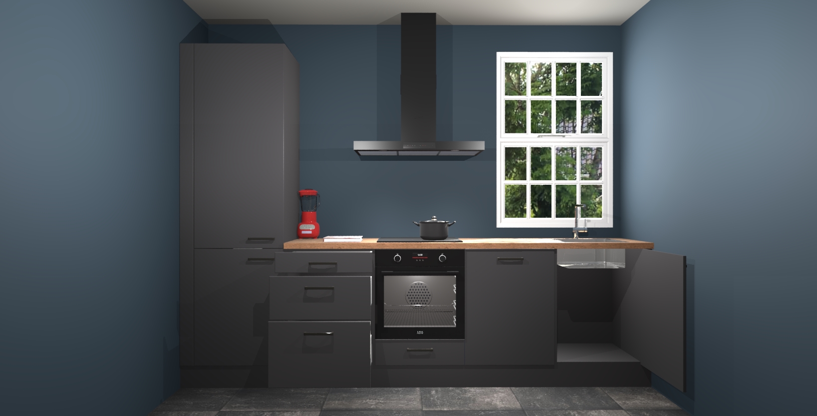 De onyxgrijze keuken Bangladesh is gemaakt van de beste materialen op de markt, dus u kunt erop vertrouwen dat hij u niet in de steek zal laten. Bovendien kunt u hem gemakkelijk upgraden naar het AEG-model als u er nog meer uit wilt halen!