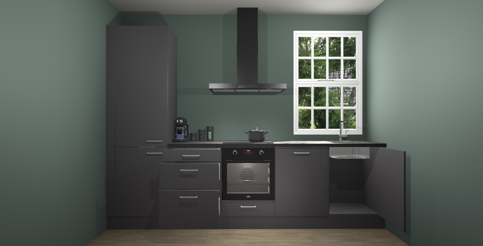 De onyxgrijze keuken Bangladesh is gemaakt van de beste materialen op de markt, dus u kunt erop vertrouwen dat hij u niet in de steek zal laten. Bovendien kunt u hem gemakkelijk upgraden naar het AEG-model als u er nog meer uit wilt halen!
